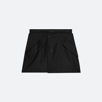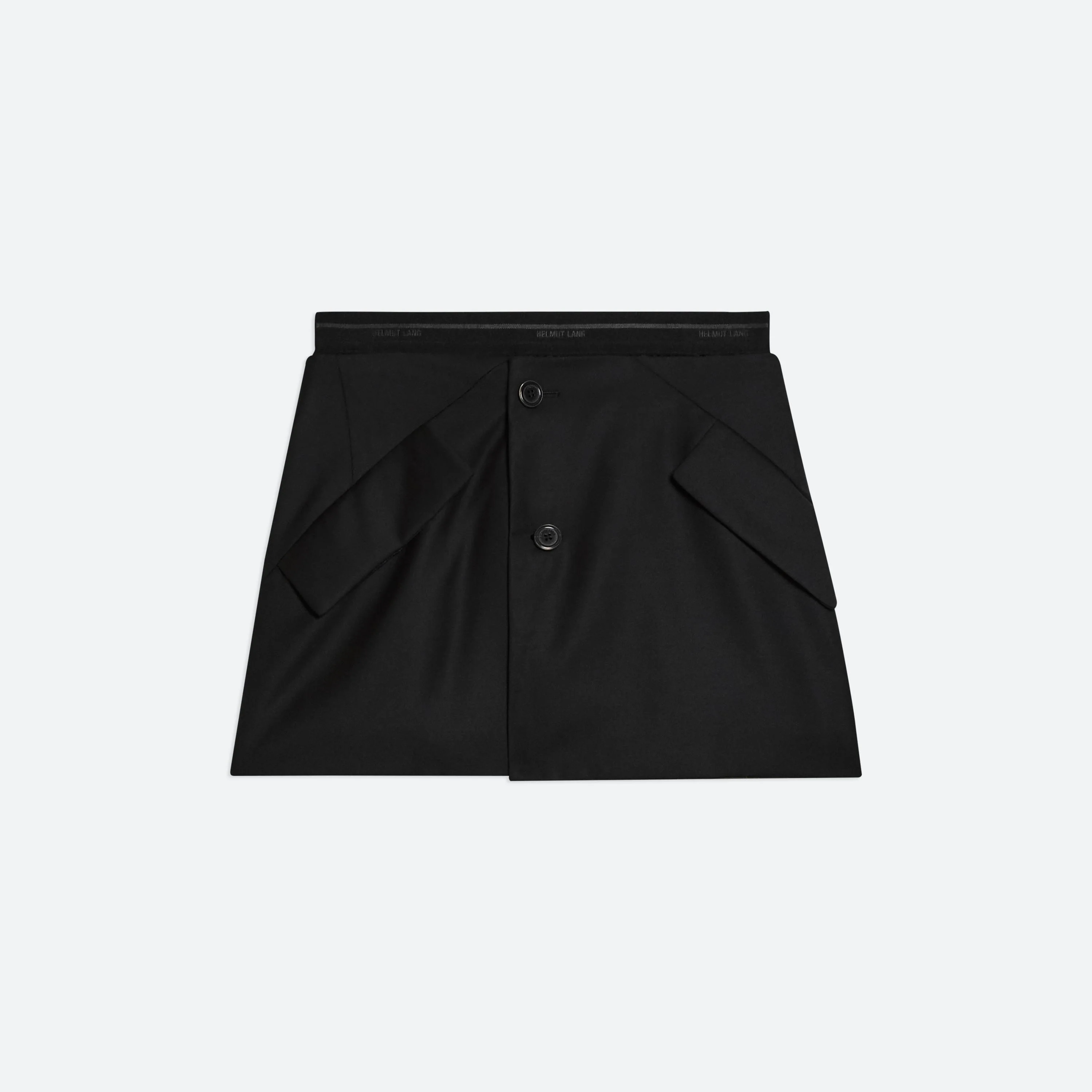 Tailored wrap skort converted from a classic blazer. Finished with traditional suiting details, including front flap pockets and blazer buttons. Fits true to size. Model is 5’10” and wears size 2. DETAILS - Outer wrap skirt with button front closure - Detachable inner short with flat knit elastic waistband - Front flap pockets - Back welt pockets with metal logo clip - Metal-wrapped logo buttons - Mid-rise - P02HW302 MATERIALS & CARE - Composition: 100% wool; lining: 100% viscose - Do not wash, do not bleach, do not tumble dry, cool iron if needed, professional dry clean with petroleum solvent only - Finished Garment Manufacturing Country/Region: China - Fabric Production Country/Region: China - Weaving Country/Region: (of fabric) China - Dyeing Country/Region: (of fabric) China - Finishing Country/Region: (of fabric) China