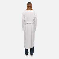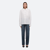 Soft cotton poplin shirt with an exaggerated shirt tail and tuxedo jacket detailing. Curved seams wrap around the body, emphasizing the relaxed fit. Adjustable waist tab can be worn in the back or front. Fits true to size. Model is 6’1” and wears size S. DETAILS - Pointed collar - Patch pocket - Button front closure and cuffs - Oversized shirt tail with central vent - Adjustable waist tab - Oversized fit - O10HW501 MATERIALS & CARE - Composition: 100% Cotton - Professional dry clean only. - Finished Garment Manufacturing Country/Region: China - Fabric Production Country/Region: Japan - Weaving Country/Region: (of fabric) Japan - Dyeing Country/Region: (of fabric) Japan - Finishing Country/Region: (of fabric) Japan