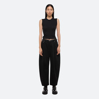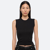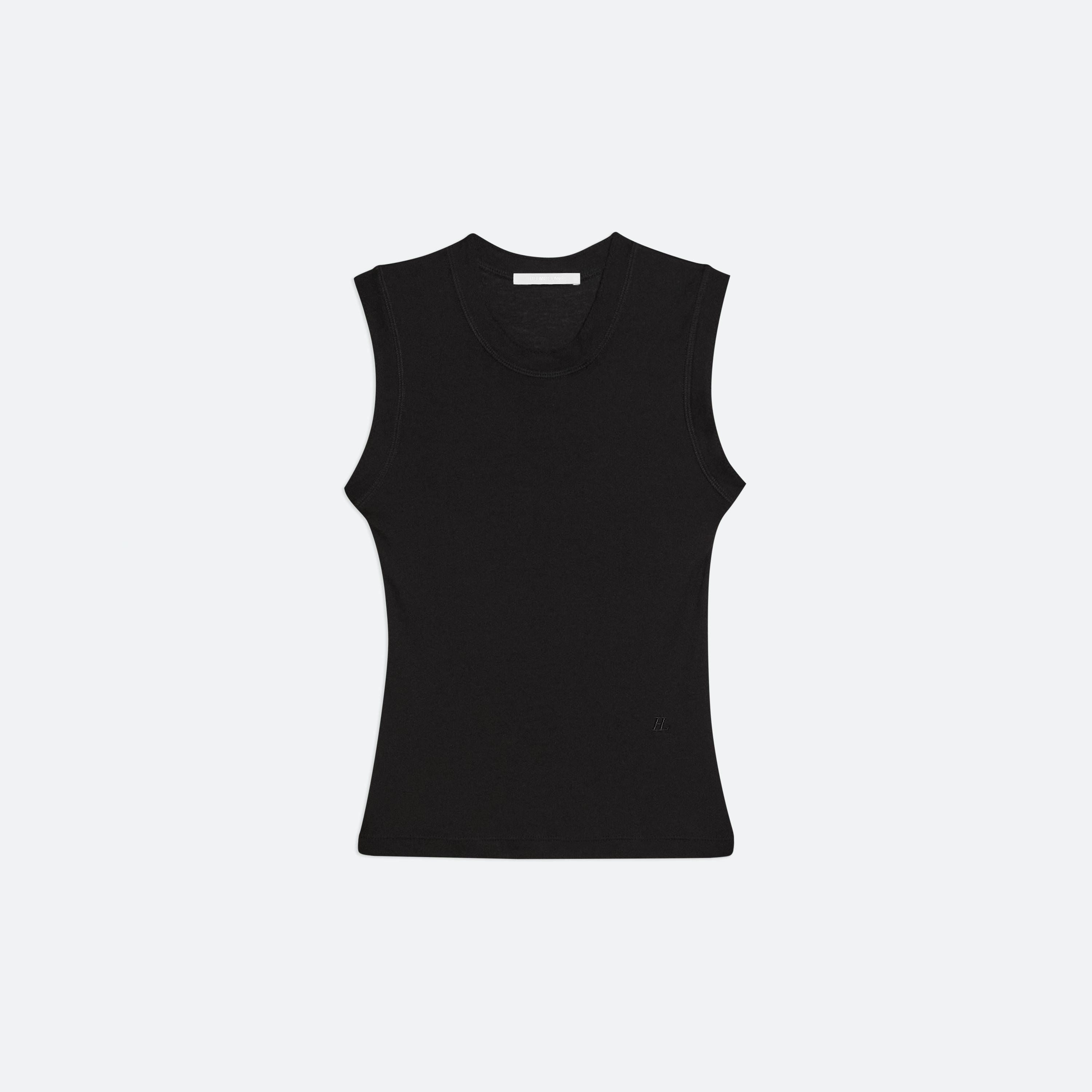 Short-sleeved cotton-modal top in ultra-fine rib. Fits true to size. Model is 5’11” and wears size S. DETAILS - Crew neck - Decorative zigzag stitch at neck and arms - Soft, compact rib knit - Tonal HL logo embroidered at front - P02HW502 MATERIALS & CARE - Composition: 50% modal, 50% Pima cotton - Machine wash cold, gentle cycle, with like colors, do not bleach, tumble dry low, cool iron if needed, do not dry clean - Finished Garment Manufacturing Country/Region: Peru - Fabric Production Country/Region: Peru - Weaving Country/Region: (of fabric) Peru - Dyeing Country/Region: (of fabric) Peru - Finishing Country/Region: (of fabric) Peru
