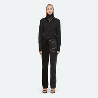 Straight-leg pants in leather and suede. Cut with a relaxed fit and finished with classic denim details. Matches the Bisected Apex Jacket. Fits true to size. Model is 5'10" and wears size 2. DETAILS - Nappa leather - Highed rise - Zip fly with button closure - Classic five-pocket style - Belt loops - Slim fit with a straight leg - Leather logo patch at back - Partially lined - 33” inseam and 16 ½” leg opening - P07HW203 MATERIALS & CARE - Composition: 100% lamb leather - Professional leather clean only. - Finished Garment Manufacturing Country/Region: India - Fabric Production Country/Region: India
