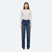 Carpenter jeans with a relaxed leg in mid-wash indigo denim. The jeans feature classic utilitarian details and a released hem. Fits true to size. Model is 5’11” and wears size 26 DETAILS - 11” rise - Straight leg - Released hem detail with raw edge effect - Zip fly with button closure - Classic five-pocket style - Belt loops - Black leather logo patch - Relaxed fit - 100% cotton denim - 33” inseam and 18” leg opening - O10DW203 MATERIALS & CARE - Composition: 100% Cotton - Machine wash cold, inside-out with like colors. Do not bleach. Do not tumble dry. Lay flat to dry. Cool iron if needed. Do not dry clean. - Finished Garment Manufacturing Country/Region: Vietnam - Fabric Production Country/Region: Italy - Weaving Country/Region: (of fabric) Italy - Dyeing Country/Region: (of fabric) Italy - Finishing Country/Region: (of fabric) Italy