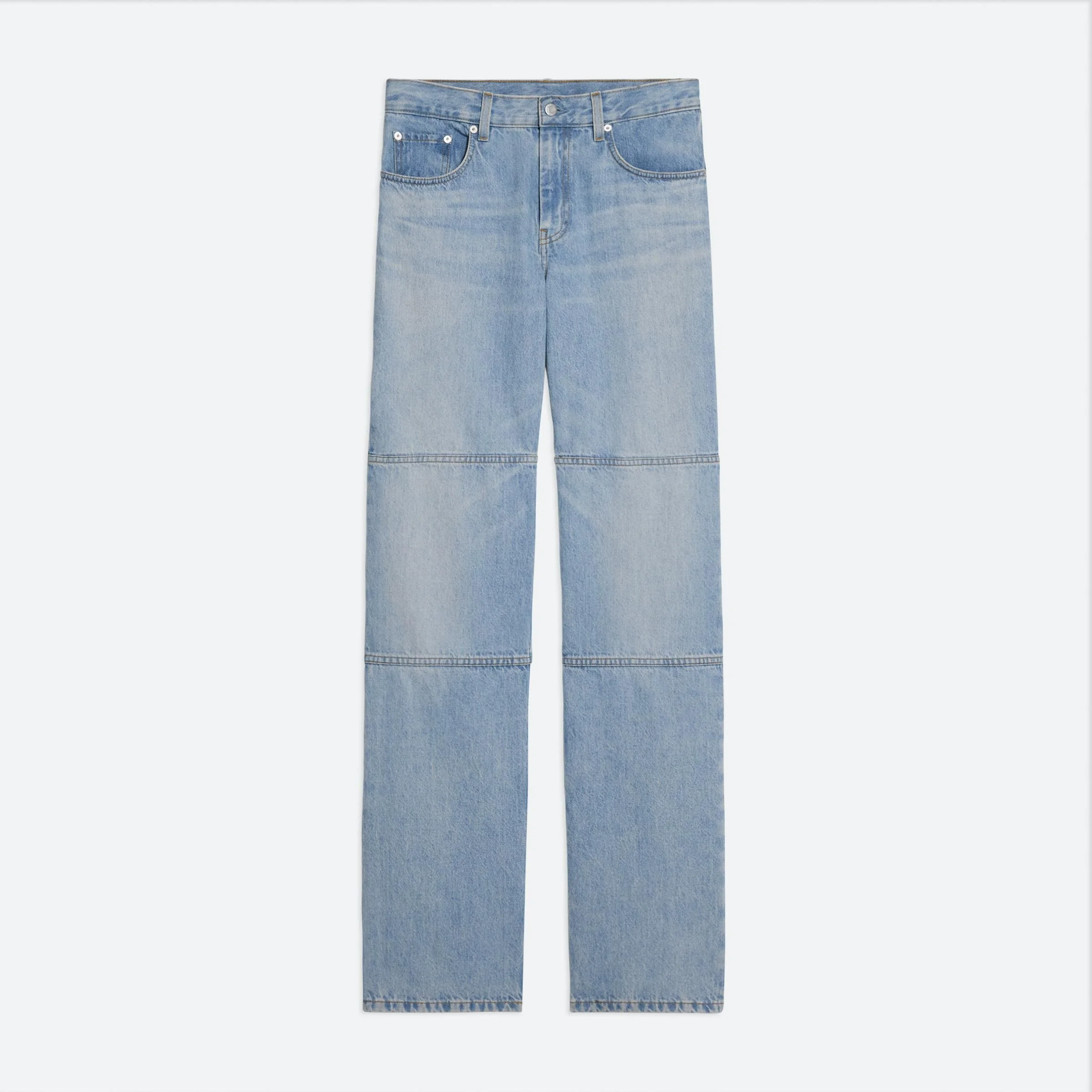 Carpenter jeans with a relaxed leg in light indigo denim. The jeans feature classic utilitarian details. Fits true to size. Model is 6’1” and is wearing size 26 DETAILS - Button-zip fly - Belt loops - Slash, patch, and welt pockets - Utilitarian details - Relaxed fit - O01DW207 MATERIALS & CARE - Composition: 100% Cotton - Machine wash cold inside out with like colors - Do not bleach, tumble dry, or dry clean - Lay flat to dry - Cool iron if needed - Finished Garment Manufacturing Country/Region: Vietnam - Fabric Production Country/Region: Italy - Weaving Country/Region: (of fabric) Italy - Dyeing Country/Region: (of fabric) Italy - Finishing Country/Region: (of fabric) Italy