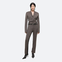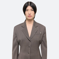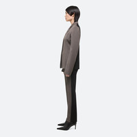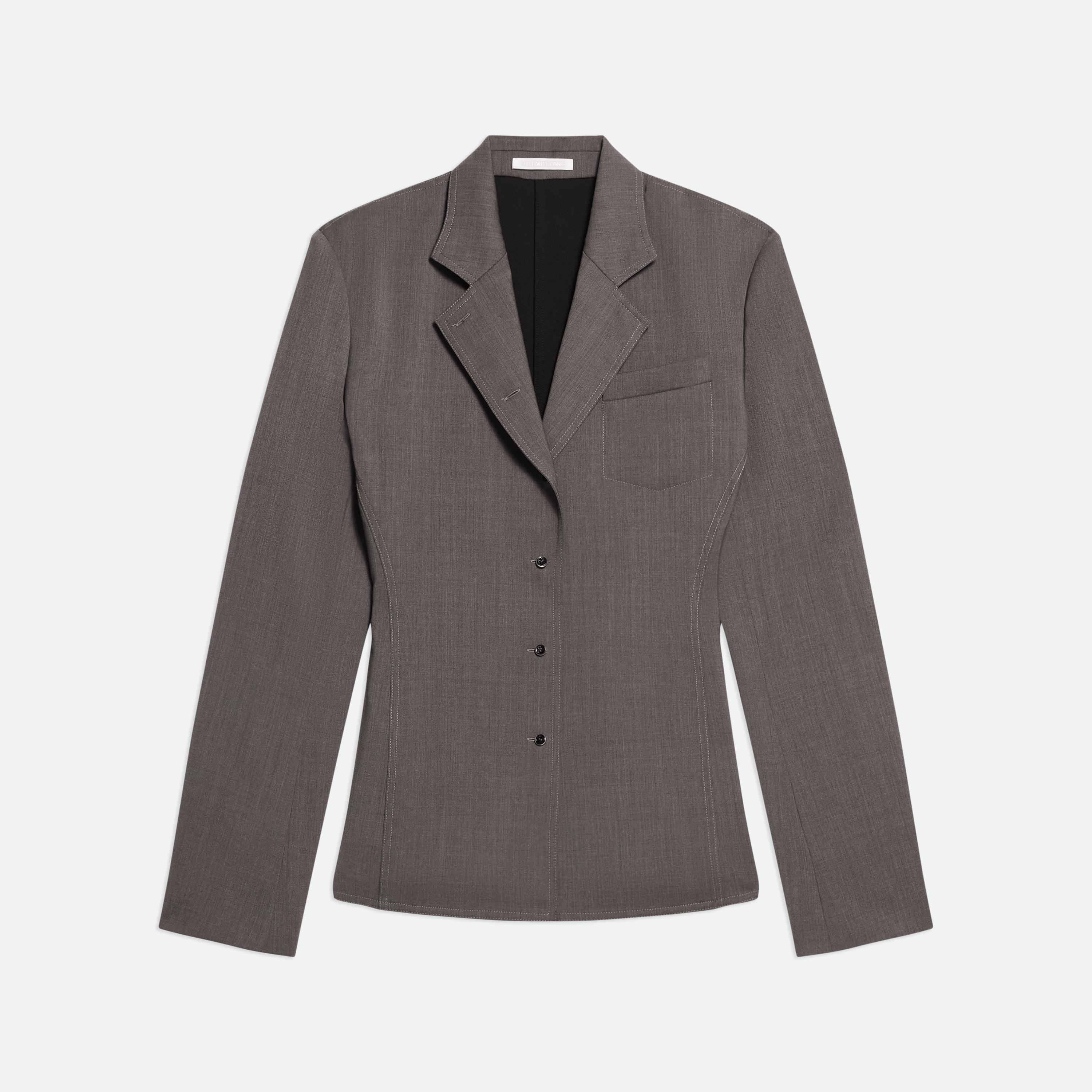 Tailored shirt in virgin Italian wool suiting, with a notched collar and classic suit jacket details. Back panel cut from a dense, structured ponte knit for an easy fit. Fits true to size. Model is 5’9” and wears size 2 DETAILS - Suiting front with ponte back - Notched convertible collar - Button front closure - Metal-wrapped buttons - Metal logo clip - Slim fit - O06HW503 MATERIALS & CARE - Composition: 100% Virgin Wool - Professional dry clean only. - Finished Garment Manufacturing Country/Region: China - Fabric Production Country/Region: Italy - Weaving Country/Region: (of fabric) Italy - Dyeing Country/Region: (of fabric) Italy - Finishing Country/Region: (of fabric) Italy