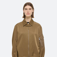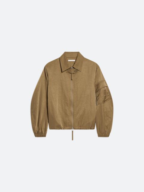 Lightweight bomber jacket in textured nylon. Finished with utility details like elastic cuffs, bungee-cord hem, and a quilted zipper guard. Matches the Creased Boxer Shorts. Fits true to size. Model is 5’10” and wears size S. DETAILS - 2-way zipper front closure - Pointed collar with storm tab - 2-way zipper front closure - Quilted zipper guard - Elastic cuffs with adjustable button tab - Utility pocket with zipper on sleeve - Unlined - P03HW103 MATERIALS & CARE - Composition: 100% recycled nylon - Professional dry clean only - Finished Garment Manufacturing Country/Region: China - Fabric Production Country/Region: Korea (South) - Weaving Country/Region: (of fabric) Korea (South) - Dyeing Country/Region: (of fabric) Korea (South) - Finishing Country/Region: (of fabric) Korea (South)