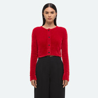 Crewneck cardigan in a feathery eyelash knit. Matches the Sweater Mini Skirt. BLACK: Fits true to size. Model is 5'10" and wears size S. RED: Fits true to size. Model is 5'11" and wears size S. DETAILS - Eyelash knit - Crewneck - Button front closure - Slim fit - P07HW701 MATERIALS & CARE - Composition: 100% nylon - Dry clean with any solvent except trichloroethylene. - Finished Garment Manufacturing Country/Region: China - Fabric Production Country/Region: China - Dyeing Country/Region: (of fabric) China - Finishing Country/Region: (of fabric) China - Spinning: (of fabric) China