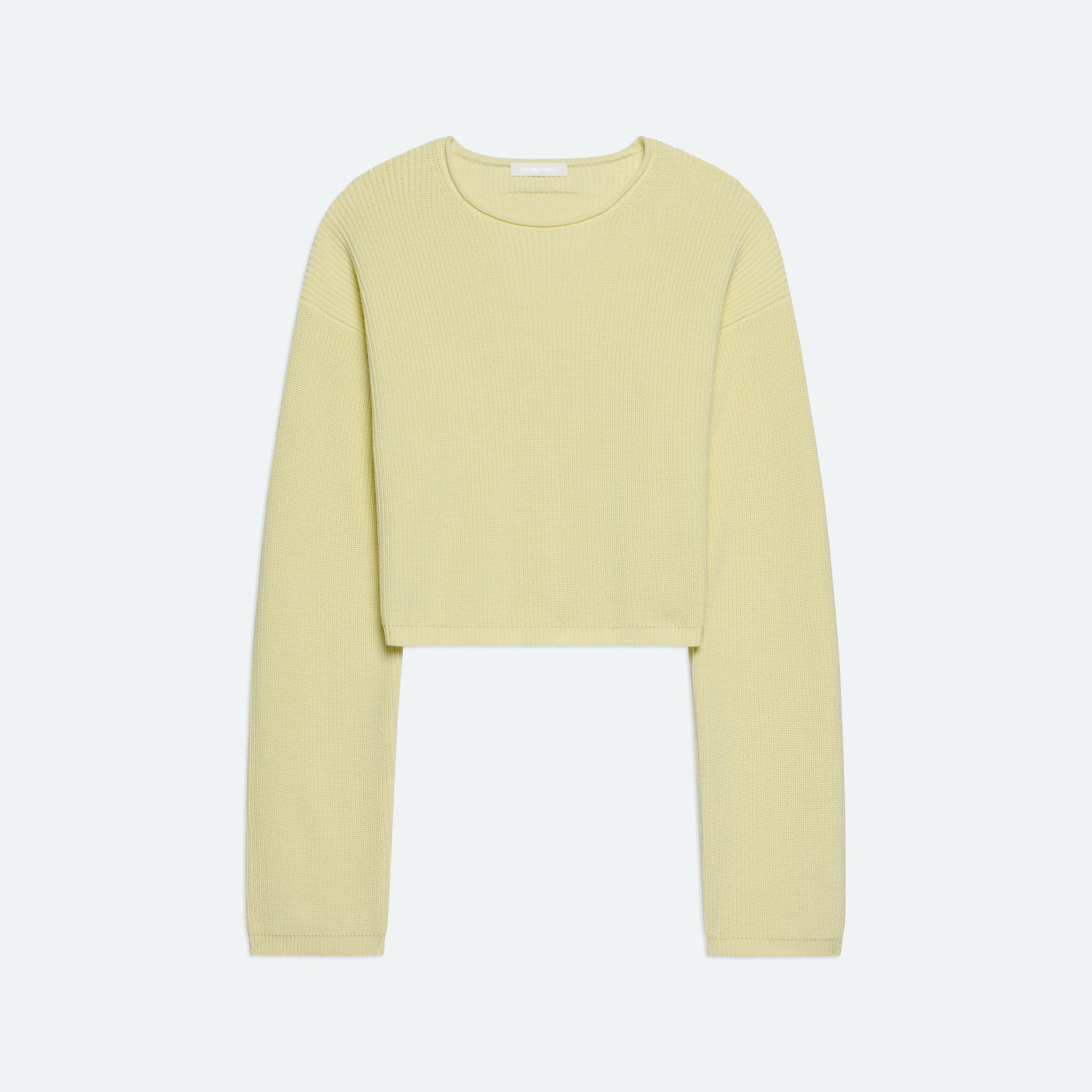 Cropped crewneck sweater in ribbed cotton. Features a rolled crewneck and baby-rib cuffs and hem. Made with a relaxed fit and finished with a mock patch on the back. Fits true to size. Model is 5'9" and wears size S. DETAILS - Crewneck - Rolled neck - Ribbed cuffs and hem - Relaxed fit - Q02HW711 MATERIALS & CARE - Composition: 100% cotton - Dry clean with any solvent except trichloroethylene. - Finished Garment Manufacturing Country/Region: Vietnam - Fabric Production Country/Region: Italy - Dyeing Country/Region: (of fabric) Italy - Finishing Country/Region: (of fabric) Italy - Spinning: (of fabric) Italy