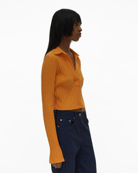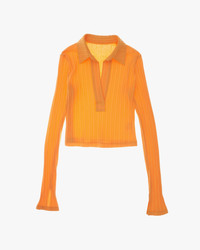 The Helmut Lang Cropped Polo is a long sleeve top with a poinTed collar in a fine cotton rib knit. DETAILS - 100% Cotton - Polo collar - Long sleeves - Imported - M01HW501 CARE - Machine wash cold gentle cycle with like colors - Do not bleach, tumble dry or dry clean - Lay flat to dry - Cool iron if needed FIT - Fits true to size - Ariana is 5'9" and wearing size S
