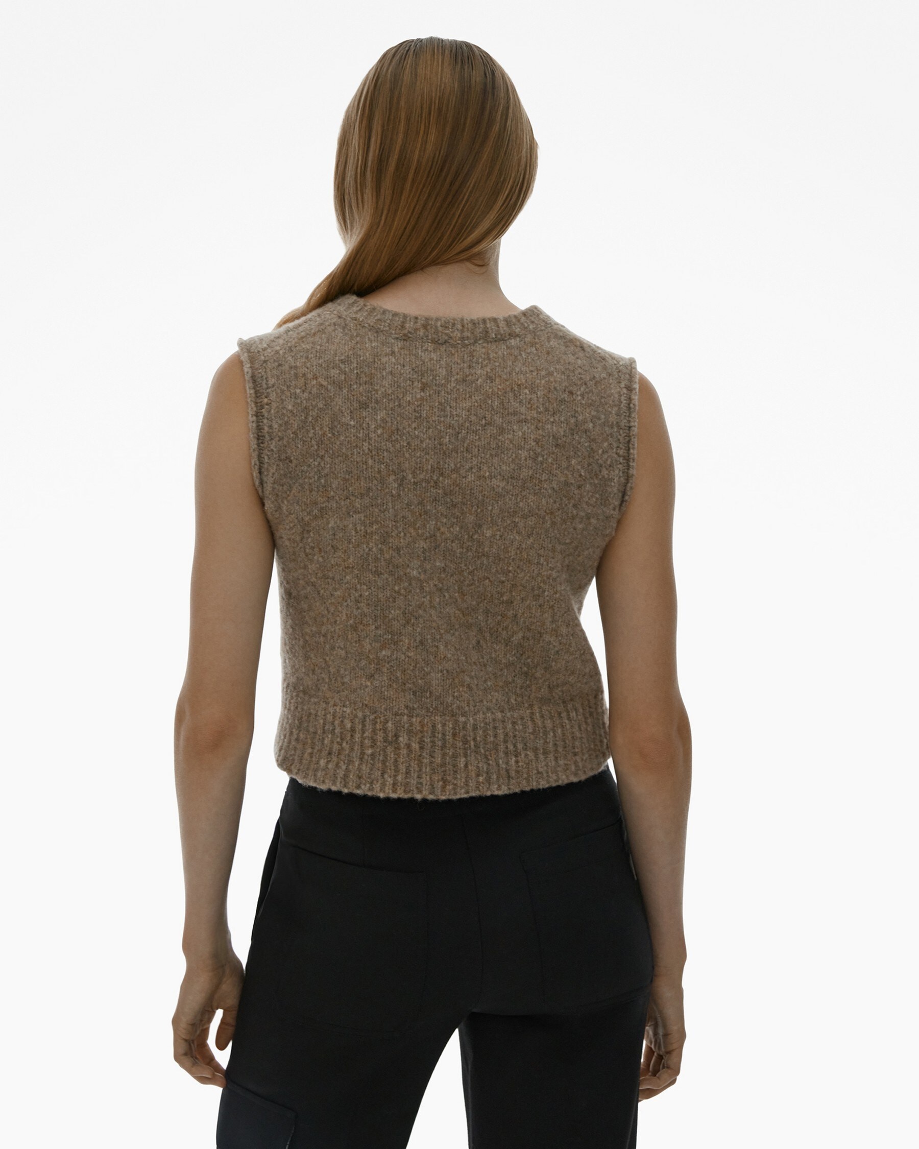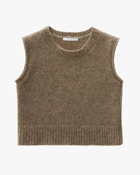 The Helmut Lang Sweater Vest is a cropped style in a wool blend knit with a crew neckline and rib knit trims. DETAILS - 80% Merino Wool, 20% Nylon - Crew neckline - Sleeveless - Rib knit details - Imported - M09HW710 CARE - Dry clean - Normal cycle, any solvent except trichloroethylene FIT - Fits true to size - Laurel is 5’9” and is wearing size S