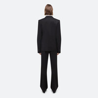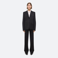 Classic tailored blazer in virgin Italian wool with notched lapels and waist flap pockets. Stylized darts create a softly curved sleeve. Fits true to size. Model is 5’9.5” and wears size 2 DETAILS - Notched lapels - Curved sleeve detail - Button front closure - Waist flap pockets - Fully lined - Relaxed fit - O06HW103 MATERIALS & CARE - Composition: 100% Virgin Wool - Machine wash cold gentle cycle with like colors. Do not bleach. Tumble dry low. Cool iron if needed. Do not dry clean. - Finished Garment Manufacturing Country/Region: China - Fabric Production Country/Region: Italy - Weaving Country/Region: (of fabric) Italy - Dyeing Country/Region: (of fabric) Italy - Finishing Country/Region: (of fabric) Italy