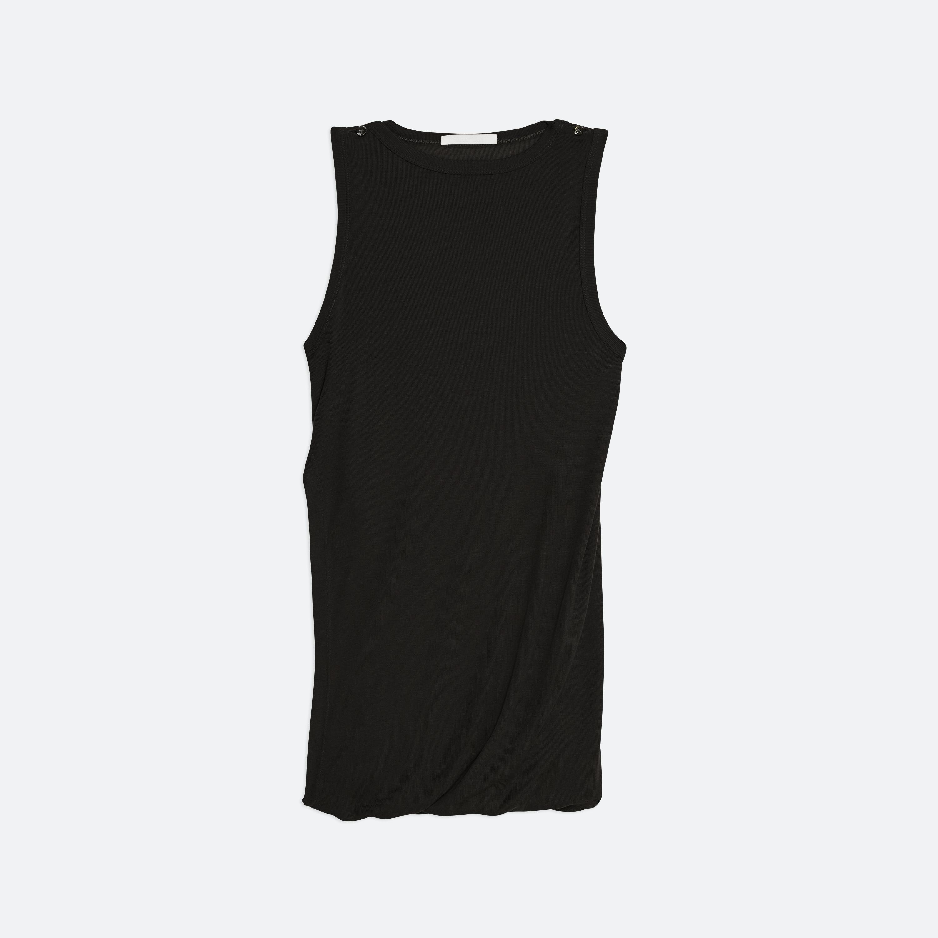 Layered tank top in a stretch viscose rib from Portugal. Twist and loop the two necklines to create a custom style, or wear it open as a dress. Fits true to size. Model is 6’1” and is wearing size S DETAILS - Double-layer construction with necklines of different depths - Opening at side - Can be worn in single layer as a dress - O04HW508 MATERIALS & CARE - Composition: 100% Tencel Lyocell - Machine wash cold and inside out with like colors. Do not bleach. Do not tumble dry. Lay flat to dry. Cool iron if needed. Do not dry clean. - Finished Garment Manufacturing Country/Region: Portugal - Fabric Production Country/Region: Portugal - Weaving Country/Region: (of fabric) Portugal - Dyeing Country/Region: (of fabric) Portugal - Finishing Country/Region: (of fabric) Portugal