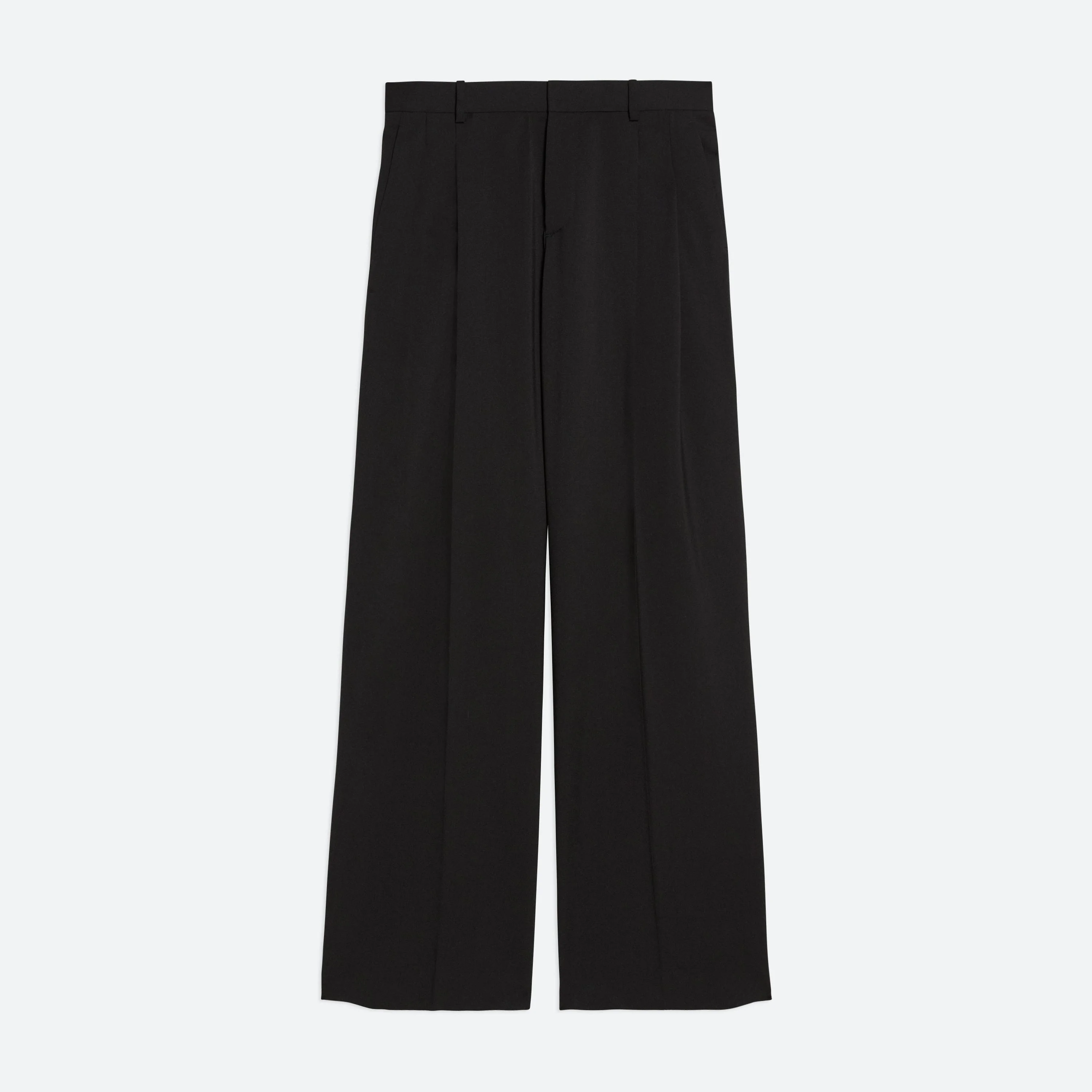 Classic trouser with double pleats at frong, made in virgin Italian wool. Cut with a relaxed fit throughout. Fits true to size. Model is 6’1” and is wearing size 2 DETAILS - Mid-rise - Straight leg - Deep pleats at front - Zip fly with hook and eye closure - Side slip pockets - Back welt pockets - Belt loops - Relaxed fit - O04HW201 MATERIALS & CARE - Composition: 100% Virgin Wool - Professional dry clean only. Do not steam. - Finished Garment Manufacturing Country/Region: China - Fabric Production Country/Region: Italy - Weaving Country/Region: (of fabric) Italy - Dyeing Country/Region: (of fabric) Italy - Finishing Country/Region: (of fabric) Italy