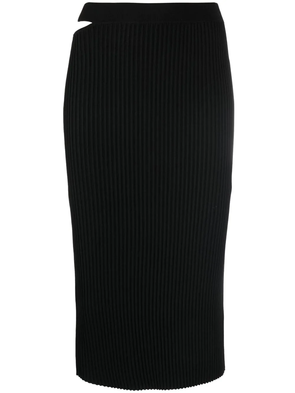 cutout-detail ribbed knit skirt jet black stretch-design ribbed knit cut-out detailing below-knee length Imported Composition Viscose 83%, Polyester 17% SIZE & FIT Model measurements Height 5 ft 10 in(1.78 m) Bust/Chest 29.92 in(76 cm) Hips 34.64 in(88 cm) Waist 23.62 in(60 cm) FittingInformation This piece fits true to size. We recommend you get your regular size Cut for a slim fit Made with a mid-weight fabric Washing instructions Dry Clean Only
