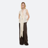 Sleeveless top in silk satin with exaggerated scarf detail and silk tie closure. Wear with the draped scarf in front for a deep V-neck, or reverse it for an open-back look. Fits true to size. Model is 5’10” and wears size XS/S. DETAILS - Sleeveless - Reversible style - Tie closure at neck and waist - P04HW501 MATERIALS & CARE - Composition: 100% silk - Do not wash. Do not bleach. Do not tumble dry. Cool iron if needed. Dry clean with any solvent except trichloroethylene. - Finished Garment Manufacturing Country/Region: China - Fabric Production Country/Region: China - Weaving Country/Region: (of fabric) China - Dyeing Country/Region: (of fabric) China - Finishing Country/Region: (of fabric) China