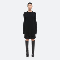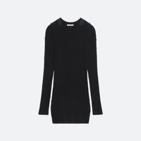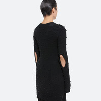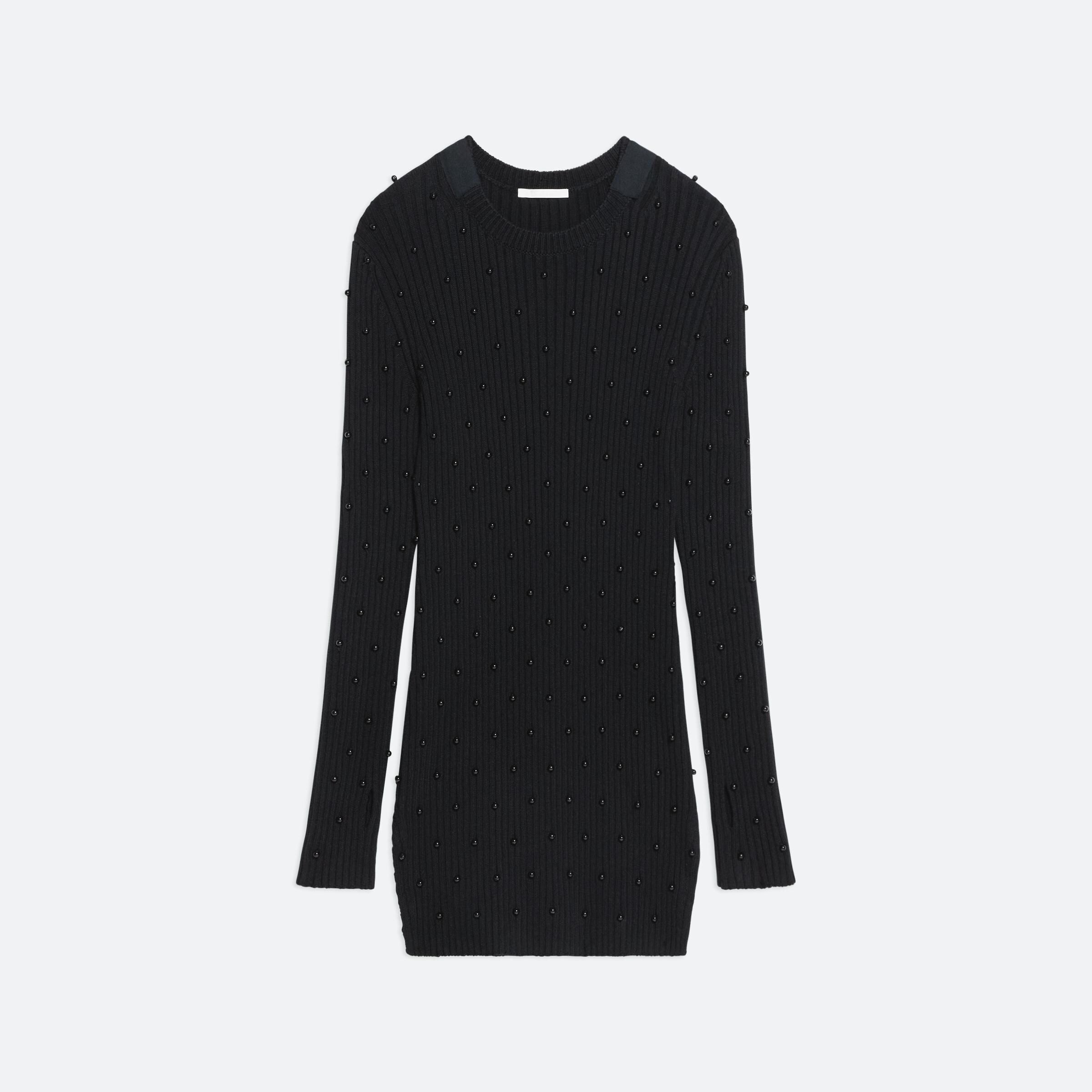 Bead embroidered rib knit dress with cotton herringbone tapes topstitched along both sides of the neck. Relaxed fit with armhole and thumbhole cut-outs. Fits true to size. Model is 5’9” and is wearing size S DETAILS - Crew neckline - Long sleeves - Elbow cut-outs - Thumbhole cut-outs - Relaxed fit - O01HW721 MATERIALS & CARE - Composition: 100% Cotton - Dry clean, Normal cycle, any solvent except trichloroethylene - Finished Garment Manufacturing Country/Region: China - Fabric Production Country/Region: Italy - Dyeing Country/Region: (of fabric) Turkey - Finishing Country/Region: (of fabric) Turkey - Spinning: (of fabric) Turkey