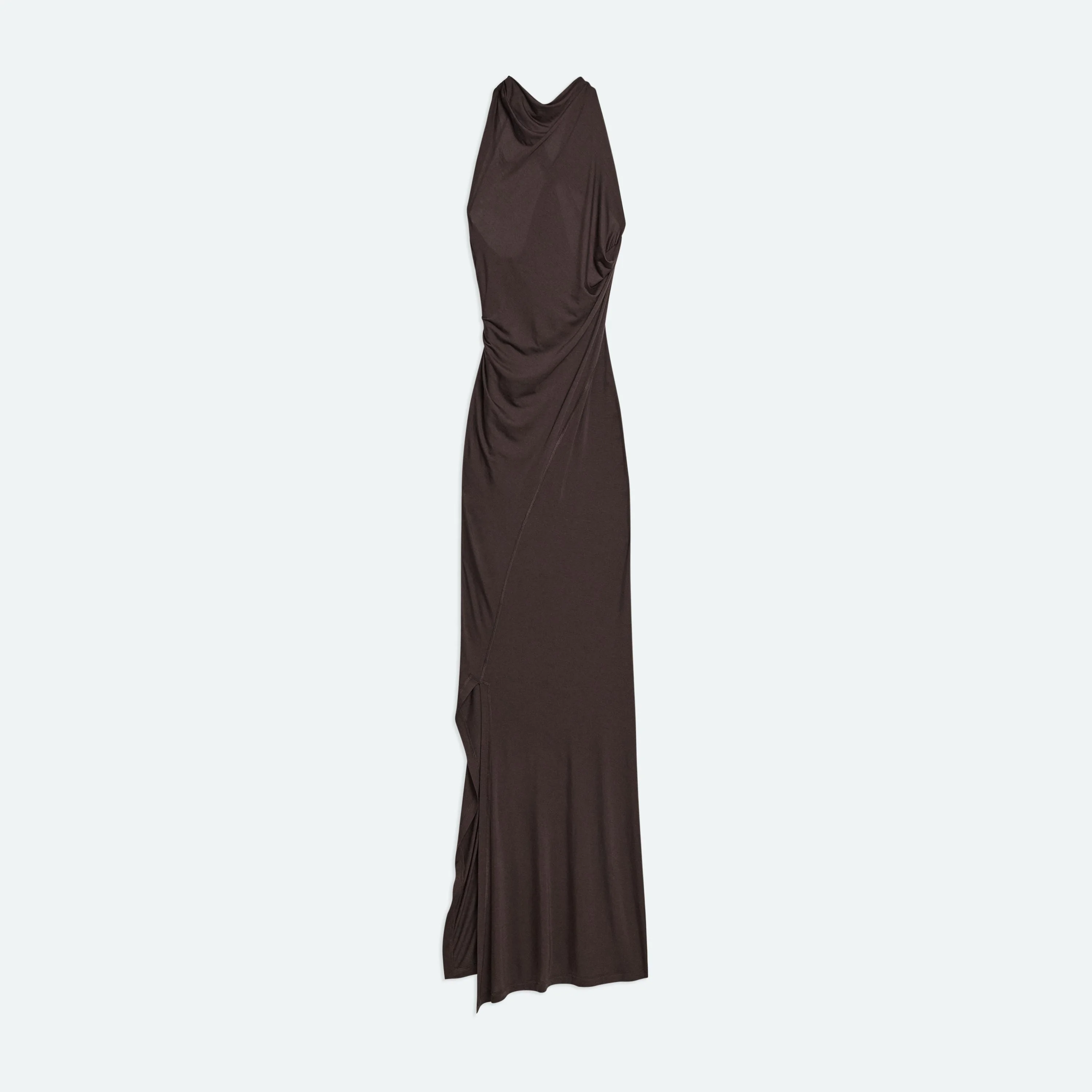 Draped maxi dress in soft lyocell jersey. Cut for a slim fit, with a high neck and asymmetrical knotted back. Fits true to size. Model is 5'11" and wears size S. DETAILS - High neck - Asymmetrical knot detail on back - Maxi length - Side slit - Slim fit - P09HW602 MATERIALS & CARE - Composition: 94% lyocell, 6% elastane - Machine wash cold, gentle cycle, with like colors. Do not bleach. Do not tumble dry. Cool iron if needed. Do not dry clean. Lay flat to dry. - Finished Garment Manufacturing Country/Region: Portugal