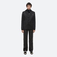 Double-breasted blazer in fluid drill suiting, laser-cut with a hole-punch texture that reveals a white logo lining beneath as it moves. Relaxed fit with peak lapels, flap pockets, hidden waist pockets, and concealed button closures. This garment was designed with a unisex fit so you can express your unique style. Fits true to size. Male model is 6’3” and wears size M. Female model is 6’1” and wears size S DETAILS - Peak lapels - Flap pockets - Waist pockets with invisible zippers - Interior welt pocket - Vent at back - Relaxed, boxy fit - Fully lined - Metal logo clip - O06HW198 MATERIALS & CARE - Composition: 80% Polyester, 20% Rayon - Professional dry clean only. - Finished Garment Manufacturing Country/Region: China - Fabric Production Country/Region: China - Weaving Country/Region: (of fabric) China - Dyeing Country/Region: (of fabric) China - Finishing Country/Region: (of fabric) China