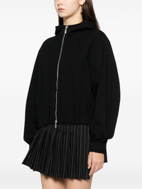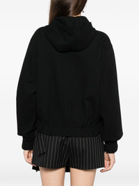 hooded shell jacket Highlights - Black - Front zip fastening - Long sleeves - Elasticated cuffs - Elasticated hem Imported Composition Viscose 67%, Nylon 29%, Elastane 4% SIZE & FIT Model measurements Height 5 ft 9 in(1.74 m) Bust/Chest 33.85 in(86 cm) Hips 35.03 in(89 cm) Waist 24.01 in(61 cm) FittingInformation Designed for a boxy fit, intended for a loose fit throughout The elasticated hem allows for movement and a comfortable fit Made from a midweight stretch fabric, this piece offers elasticity and flexibility when worn Washing instructions Dry Clean Only