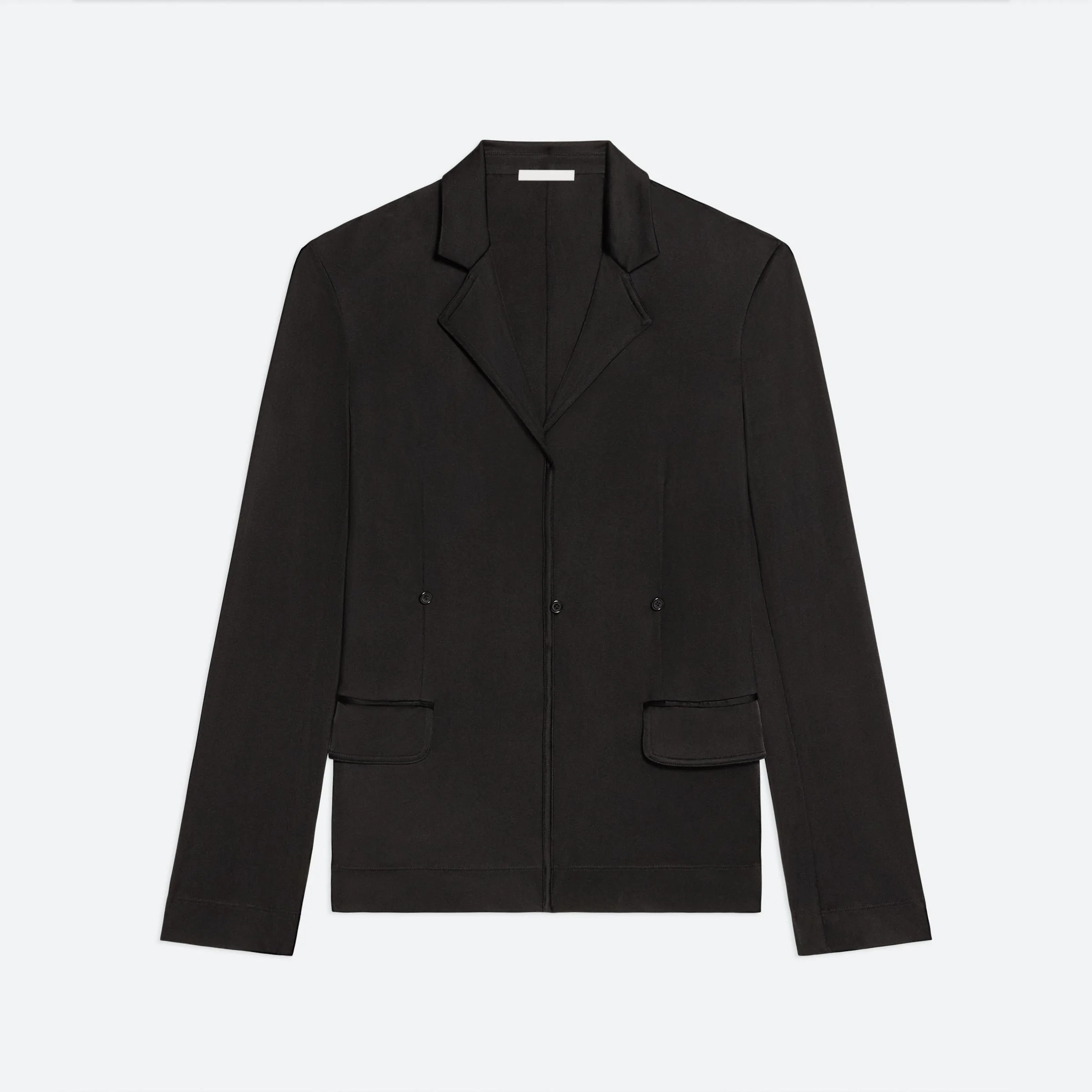 Classic blazer in fluid viscose jersey. This coat has multiple buttons to be worn single or double-breasted. Fits true to size. Model is 6’1” and is wearing size S DETAILS - Notched lapels - Long sleeves - Front button closure - Waist flap pockets - Relaxed fit - O02HW104 MATERIALS & CARE - Composition: 100% Viscose - Professional dry clean only - Finished Garment Manufacturing Country/Region: China - Fabric Production Country/Region: Italy - Weaving Country/Region: (of fabric) Italy - Dyeing Country/Region: (of fabric) Italy - Finishing Country/Region: (of fabric) Italy