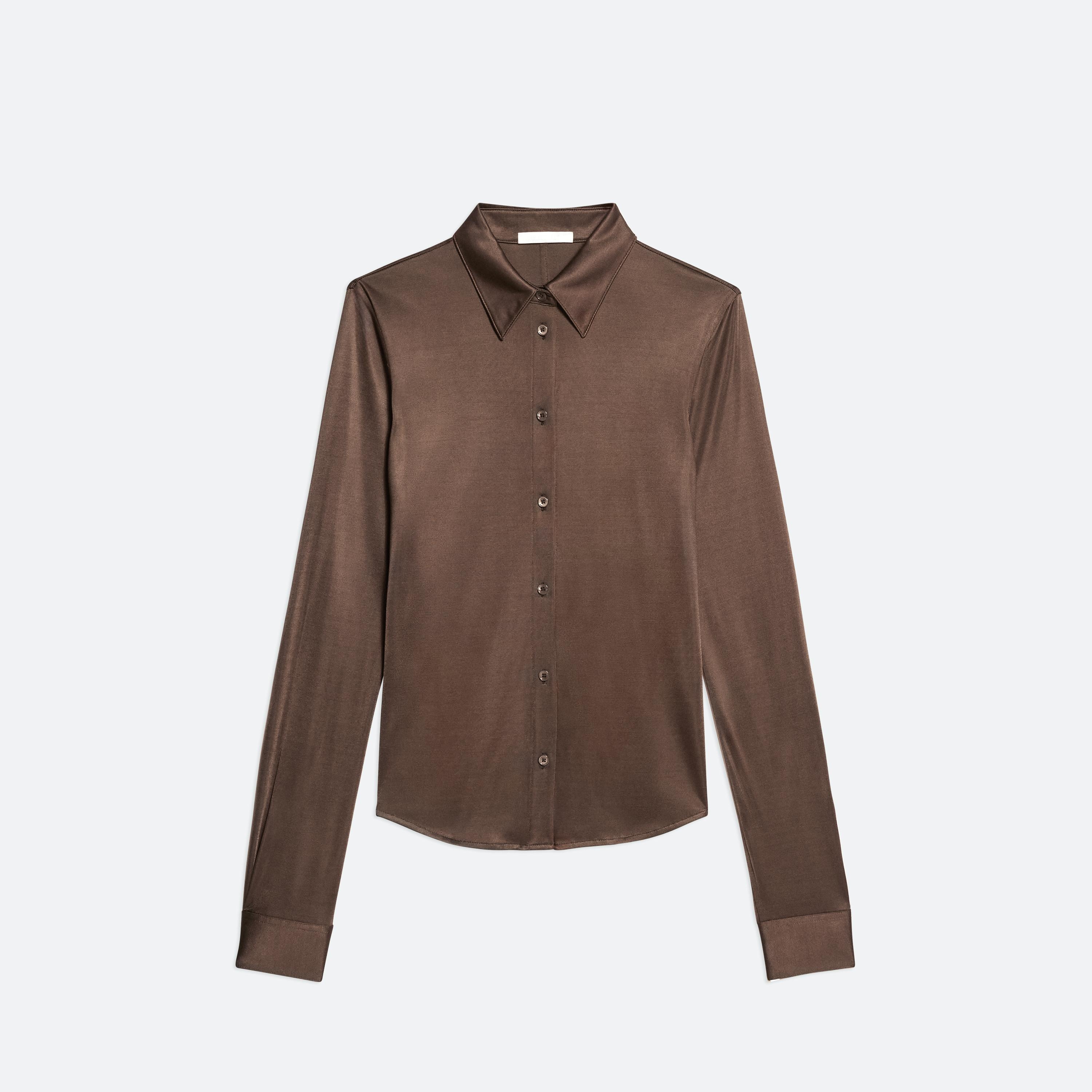 Classic slim fit shirt in fluid Italian viscose jersey. Matches the Fluid Car Trouser. Fits true to size. Model is 5’11” and is wearing size S DETAILS - Pointed collar - Long sleeves - Button front closure and cuffs - Slim fit - Flat seams - O02HW515 MATERIALS & CARE - Composition: 100% viscose - Professional dry clean only. Cool iron if needed. - Finished Garment Manufacturing Country/Region: China - Fabric Production Country/Region: Italy - Weaving Country/Region: (of fabric) Italy - Dyeing Country/Region: (of fabric) Italy - Finishing Country/Region: (of fabric) Italy