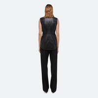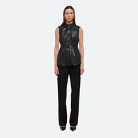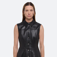 Sleeveless leather shirt with a fitted waist sculpted by darts. Fits true to size. Model is 6’1” and wears size S. DETAILS - Pointed collar - Sleeveless - Fitted at waist - Snap front closure - Fully lined - Supple lambskin leather - O10HW507 MATERIALS & CARE - Composition: 100% Lamb Leather - Professional leather clean only. - Finished Garment Manufacturing Country/Region: India - Fabric Production Country/Region: India - Dyeing Country/Region: (of fabric) India - Finishing Country/Region: (of fabric) India