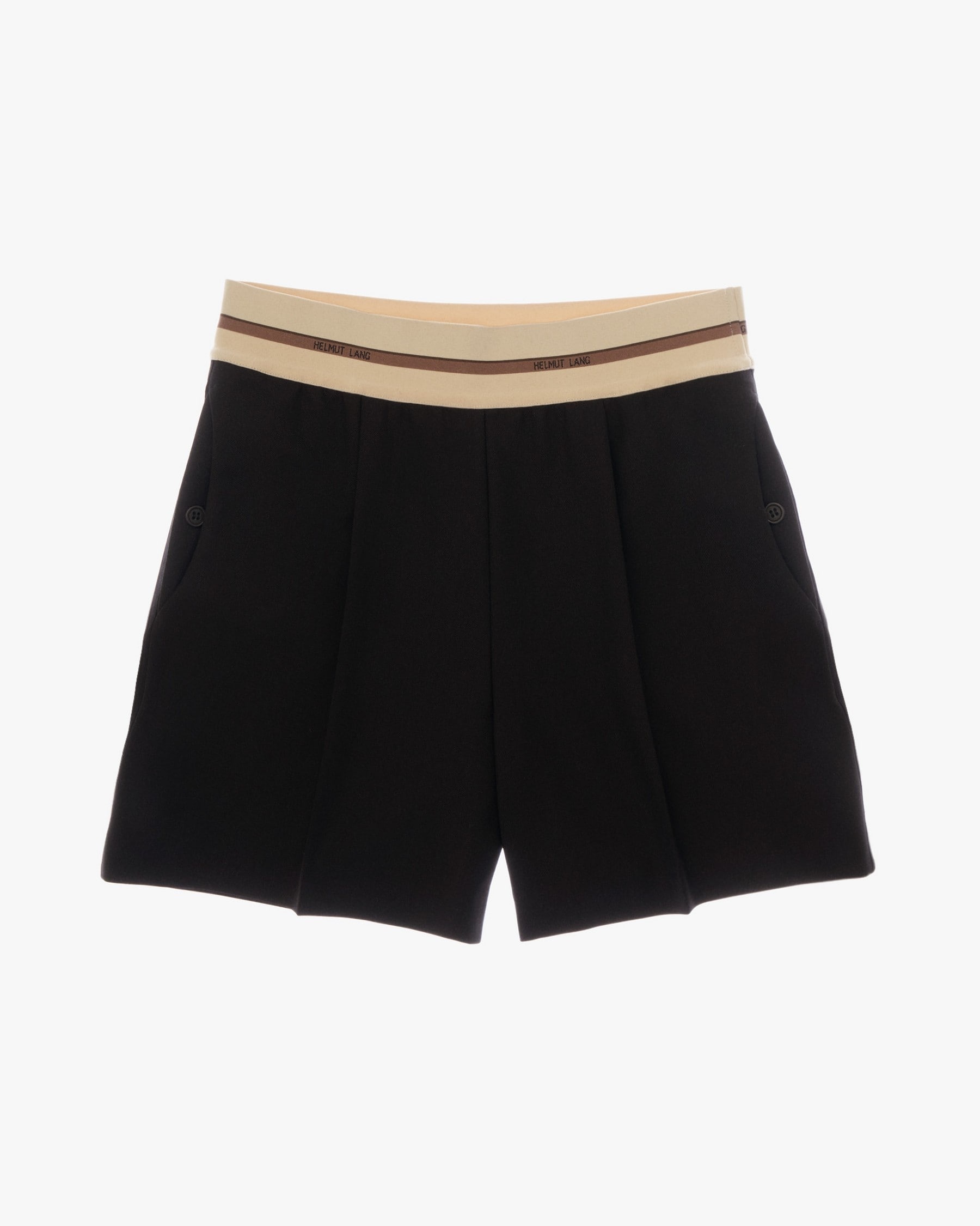 The Helmut Lang Pull On Short is a high-rise short in stretch wool-blend with a pleated elasticized logo waistband. DETAILS - 48% Polyester, 48% Virgin Wool, 4% Elastane - Logo elasticized waistband - Front pleats - Pull on style - Imported - M05HW208 CARE - Professional dry clean only FIT - Fits true to size - Naki is 5'11" and wearing size 2