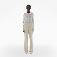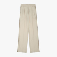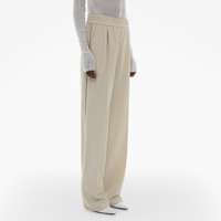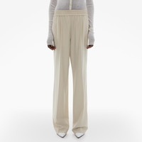 The Helmut Lang Suit Pant is a wide-leg style in stretch wool blend with a pleated pull-on waistband, HL logo piping at side, side slash and back welt pockets. DETAILS - 53% Polyester, 43% Virgin Wool, 4% Elastane - High-rise - Pleated pull-on waistband - Side HL logo piping -Side slash pockets -Back welt pockets - Wide-leg silhouette - Imported - N06HW205 CARE - Professional dry clean only FIT - Fits true to size - Rocio is 5’10” and is wearing size 2