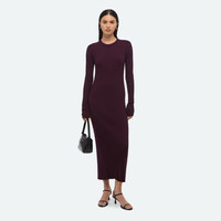 Long-sleeve maxi dress with an open back. A traveling rib knit detail opens into a softly flared skirt. Fits true to size. Model is 5'11" and wears size S. DETAILS - Crewneck - Long sleeves - Open back - Maxi length - Slim fit - P06HW703 MATERIALS & CARE - Composition: 100% wool - Dry clean with any solvent except trichloroethylene. - Finished Garment Manufacturing Country/Region: China - Fabric Production Country/Region: China - Dyeing Country/Region: (of fabric) China - Finishing Country/Region: (of fabric) China - Spinning: (of fabric) China