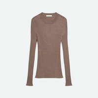 Long-sleeve sweater with an open back. A traveling rib knit wraps around the body for a close fit. Fits true to size. Model is 5'11" and wears size S. DETAILS - Crewneck - Long sleeves - Open back - Slim fit - P06HW704 MATERIALS & CARE - Composition: 100% wool - Dry clean with any solvent except trichloroethylene. - Finished Garment Manufacturing Country/Region: China - Fabric Production Country/Region: China - Dyeing Country/Region: (of fabric) China - Finishing Country/Region: (of fabric) China - Spinning: (of fabric) China
