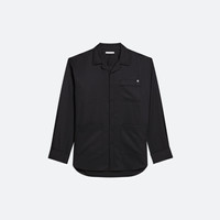 Oversized button-front shirt in satin logo jacquard. Finished with classic pajama details like a convertible collar and piped accents. Matches the Jacquard Car Short. This garment was designed with a unisex fit so you can express your unique style. Fits true to size. Male model is 6'1” and wears size M. Female model is 6’1” and wears size S. DETAILS - Convertible collar - Custom jacquard with tonal HL print - Chest pocket with metal logo clip - Patch pockets at waist - Button front closure and cuffs - Piped accents throughout - Shirttail hem - Oversized fit - O10HM599 MATERIALS & CARE - Composition: 73% Polyester, 25% Wool, 2% Elastane - Professional dry clean only. - Finished Garment Manufacturing Country/Region: China - Fabric Production Country/Region: Turkey - Weaving Country/Region: (of fabric) Turkey - Dyeing Country/Region: (of fabric) Turkey - Finishing Country/Region: (of fabric) Turkey