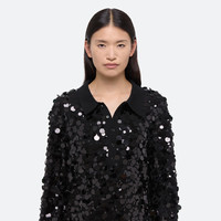Wool polo sweater finished with hand-sewn paillettes. Matches the Paillette Mini Skirt . Fits true to size. Model is 5’11” and wears size L. DETAILS - 5-button polo collar - Ribbed hem and cuffs - Tonal paillettes in multiple sizes - Relaxed fit - 12-gauge knit - O10HW707 MATERIALS & CARE - Composition: 100% Wool - Dry clean with any solvent except trichloroethylene. - Finished Garment Manufacturing Country/Region: China - Fabric Production Country/Region: China - Dyeing Country/Region: (of fabric) China - Finishing Country/Region: (of fabric) China - Spinning: (of fabric) China