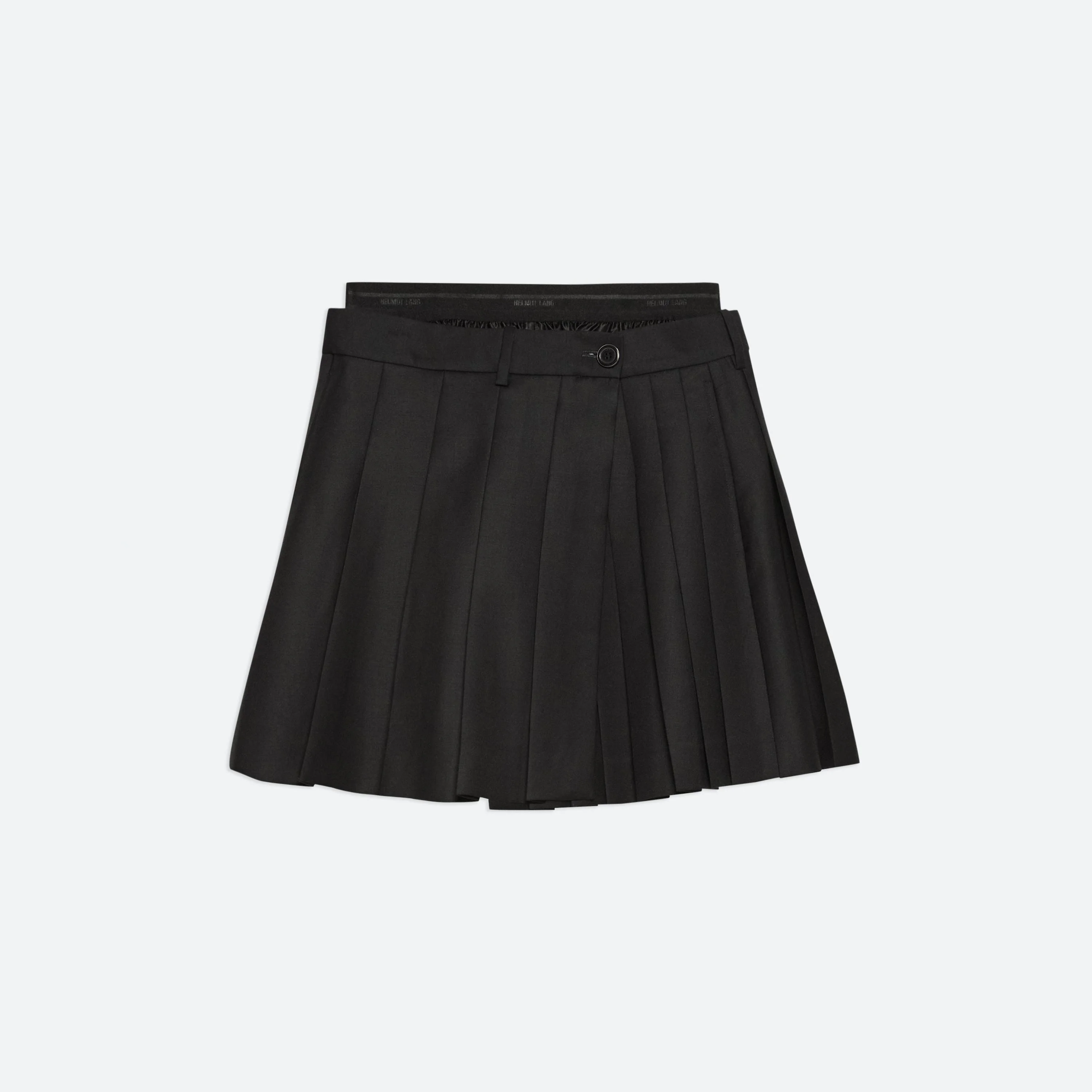 Layered skort in classic wool twill. Finished with variegated knife pleats and an adjustable wrap construction. Comes with logo-waistband shorts that acn be worn together or separately. Fits true to size. Model is 5’10” and wears size 2. DETAILS - Mini length - Outer wrap skirt with button front closure - Detachable inner short with flat knit elastic waistband - On-seam pockets - Back welt pockets with metal logo clip - Belt loops - P04HW303 MATERIALS & CARE - Composition: 100% wool; lining: 100% viscose - Machine wash warm on permanent press. Do not bleach. Hang to dry in shade. Warm iron if needed. Dry clean with any solvent except trichloroethylene. - Finished Garment Manufacturing Country/Region: China - Fabric Production Country/Region: China - Weaving Country/Region: (of fabric) China - Dyeing Country/Region: (of fabric) China - Finishing Country/Region: (of fabric) China
