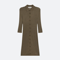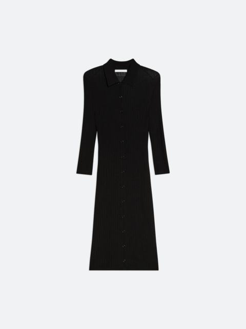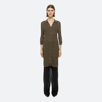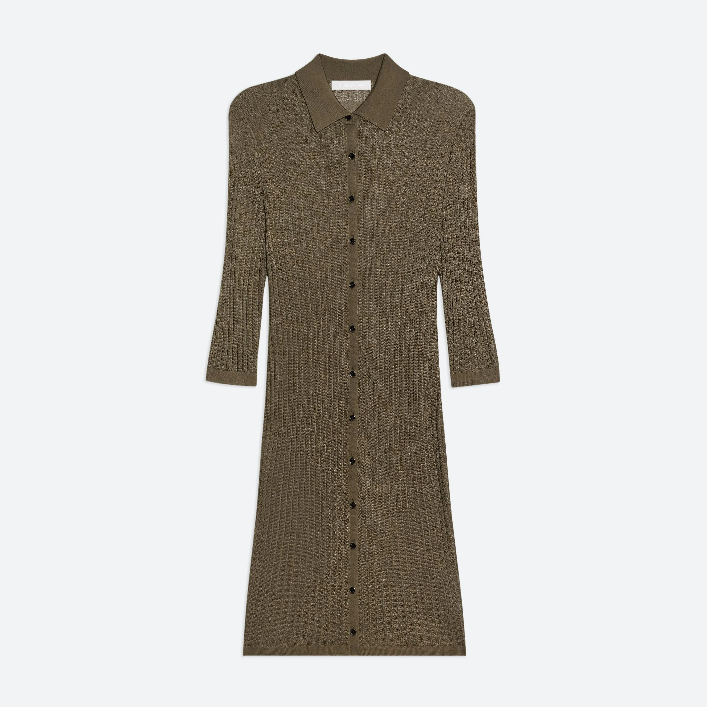 Button-front shirt dress in pointelle rib knit. Wear it with the included tonal slip or as a sheer layer. Fits true to size. Model is 5’11” and wears size S. DETAILS - Sheer pointelle rib knit - Pointed collar - Button front closure - Ribbed collar, hem, and cuffs - Elbow-length sleeves - Metal-wrapped logo buttons - Includes separate knit slip - P02HW701 MATERIALS & CARE - Composition: 88% viscose, 12% nylon - Dry clean with any solvent except trichloroethylene - Finished Garment Manufacturing Country/Region: China - Fabric Production Country/Region: China - Dyeing Country/Region: (of fabric) China - Finishing Country/Region: (of fabric) China - Spinning: (of fabric) China