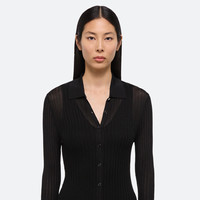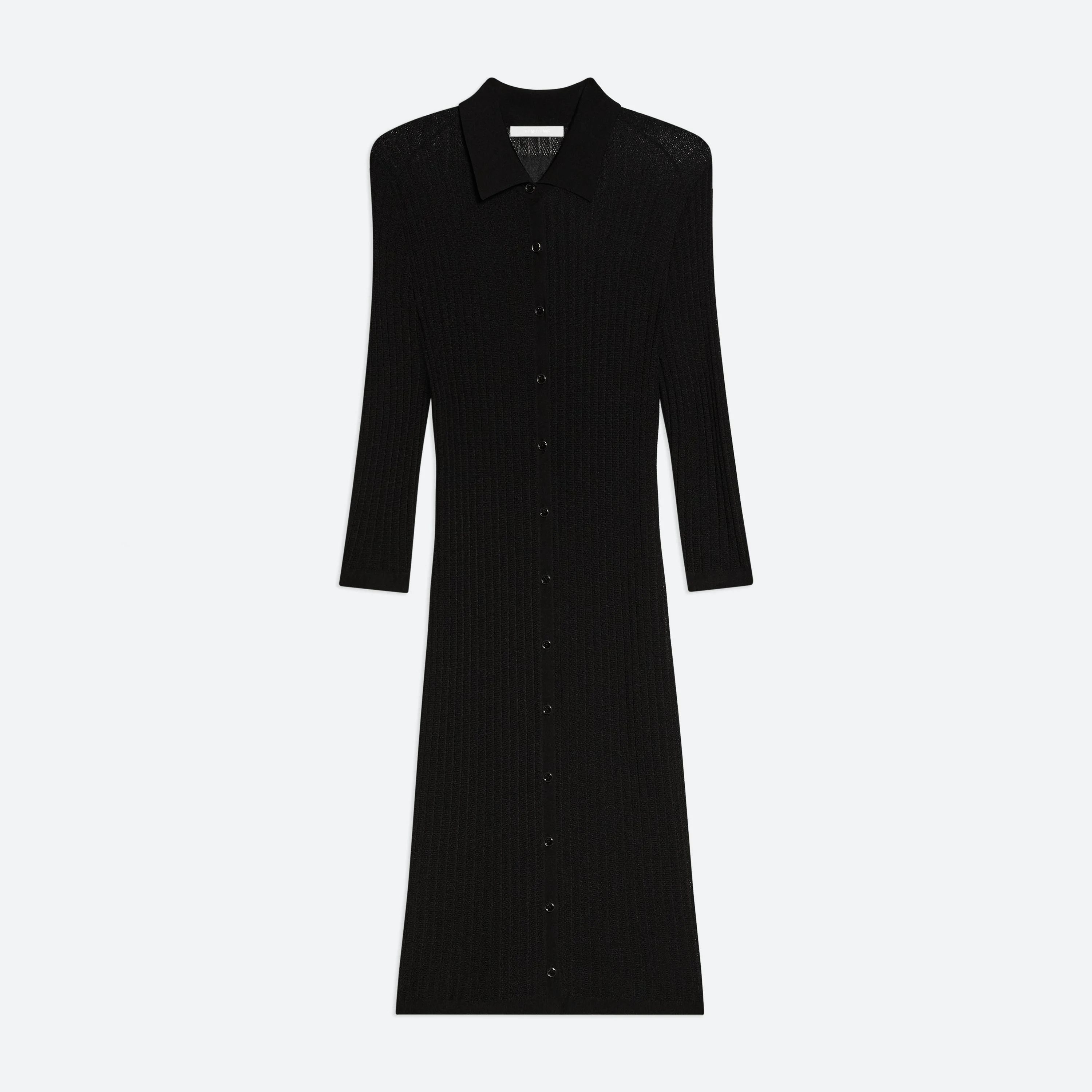 Button-front shirt dress in pointelle rib knit. Wear it with the included tonal slip or as a sheer layer. Fits true to size. Model is 5’11” and wears size S. DETAILS - Sheer pointelle rib knit - Pointed collar - Button front closure - Ribbed collar, hem, and cuffs - Elbow-length sleeves - Metal-wrapped logo buttons - Includes separate knit slip - P02HW701 MATERIALS & CARE - Composition: 88% viscose, 12% nylon - Dry clean with any solvent except trichloroethylene - Finished Garment Manufacturing Country/Region: China - Fabric Production Country/Region: China - Dyeing Country/Region: (of fabric) China - Finishing Country/Region: (of fabric) China - Spinning: (of fabric) China