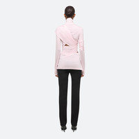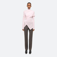 Long-sleeved turtleneck in lyocell jersey. Features a layered design with draped panels that wrap around the body, creating a sense of movement and allowing for flashes of exposed skin. Fits true to size. Model is 5’10” and wears size S DETAILS - Turtleneck - Long-sleeved - Draped cut-out detail at back - Asymmetric hem - Ruched armband detail on sleeve - Partially lined by wrap detail - O07HW501 MATERIALS & CARE - Composition: 94% Lyocell, 6% Elastane - Machine wash cold with like colors. Do not bleach. Do not tumble dry. Lay flat to dry.cool iron i f needed. Do not dry clean. - Finished Garment Manufacturing Country/Region: China - Fabric Production Country/Region: Portugal - Weaving Country/Region: (of fabric) Portugal - Dyeing Country/Region: (of fabric) Portugal - Finishing Country/Region: (of fabric) Portugal