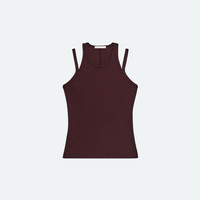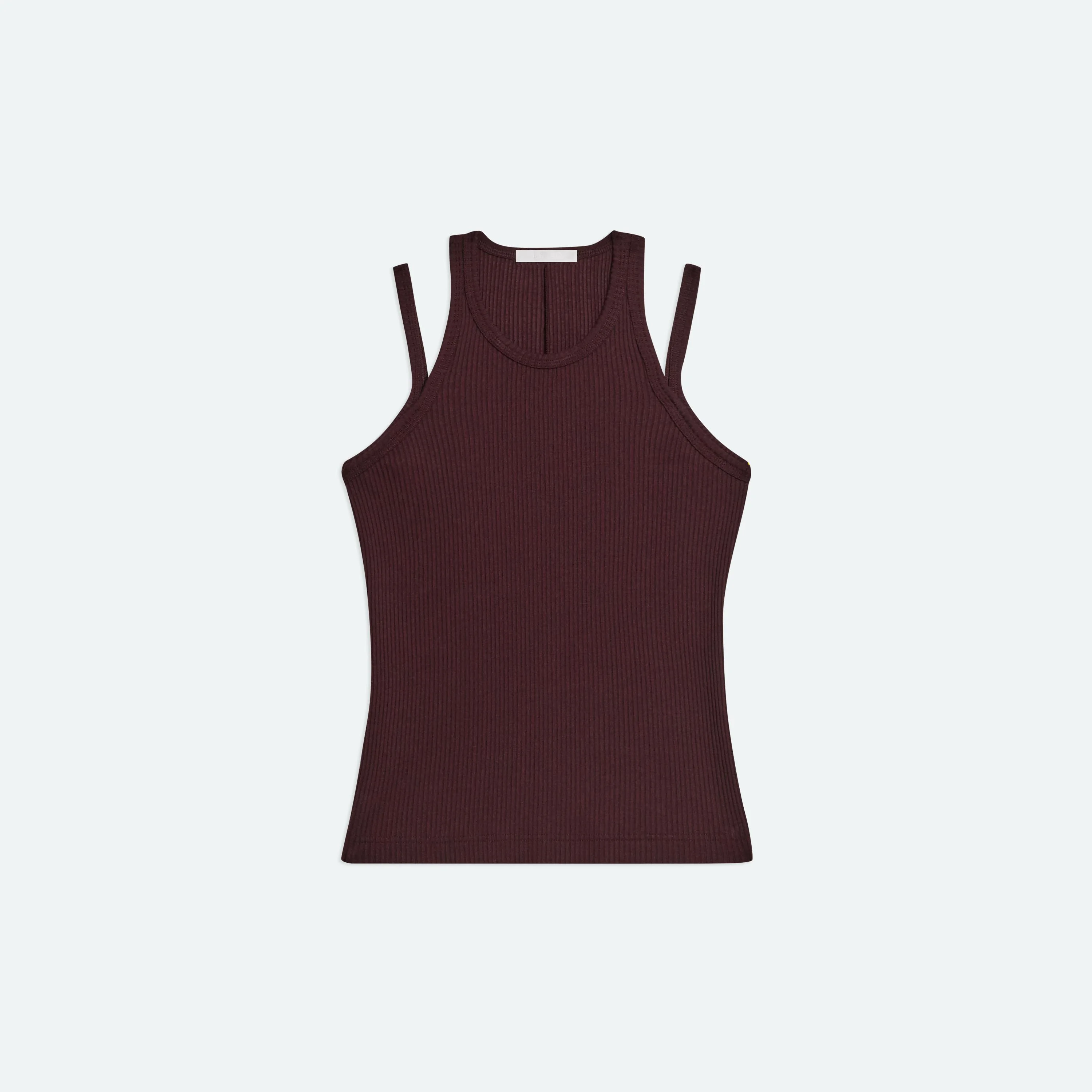 Classic ribbed tank top with doubled strap detail. Fits true to size. Model is 5'11" and wears size S. DETAILS - Crewneck - Racerback - Double strap on shoulders - Slim fit - P09HW504 MATERIALS & CARE - Composition: 95% cotton, 5% spandex - Machine wash cold gentle cycle, with like colors. Do not bleach. Tumble dry low. Cool iron if needed. Do not dry clean. - Finished Garment Manufacturing Country/Region: Peru - Fabric Production Country/Region: Peru - Weaving Country/Region: (of fabric) Peru - Dyeing Country/Region: (of fabric) Peru - Finishing Country/Region: (of fabric) Peru