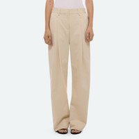 Wide-leg trousers in cotton chino twill. Cut with a mid rise and a gently curved outseam that creates a slight barrel-leg shape. Finished with a partially elasticized waistband and metal logo detail. Fits true to size. Model is 5'11" and wears size 2. DETAILS - Zip fly with hook and bar closure - Single front pleat - Pockets at front and back - Elasticized waistband on sides - Metal logo detail at side - 32 1/2” inseam and 21” leg opening - Q01HW202 MATERIALS & CARE - Composition: 100% cotton - Cool iron if needed. Professional dry clean only. - Finished Garment Manufacturing Country/Region: Vietnam - Fabric Production Country/Region: Japan - Weaving Country/Region: (of fabric) Japan - Dyeing Country/Region: (of fabric) Japan - Finishing Country/Region: (of fabric) Japan