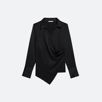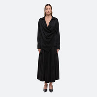 Wrap-front shirt in a fluid satin crepe. Adjust the depth of the wrap to control the amount of coverage, wear as a cowl neck, or leave open for a draped look. Fits true to size. Model is 6’1” and wears size S. DETAILS - Pointed collar - Buttons at side and collar for adjustable fit - Tuxedo cuffs - Relaxed fit - O09HW501 MATERIALS & CARE - Composition: 82% Triacetate, 18% Polyester - Professional dry clean only. Cool iron and light steam if needed light steam. - Finished Garment Manufacturing Country/Region: China - Fabric Production Country/Region: Japan - Weaving Country/Region: (of fabric) Japan - Dyeing Country/Region: (of fabric) Japan - Finishing Country/Region: (of fabric) Japan