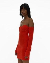 The Helmut Lang Contour Dress is a ribbed long-sleeve mini style with a sweetheart neckline and back slit hem. DETAILS - 62% Viscose, 38% Polyester - Sweetheart underwire neckline - Long sleeves - Mini length - Imported - M02HW707 CARE - Dry clean - normal cycle, any solvent except trichloroethylene FIT - Fits true to size - Ariana is 5'9" and wearing size S - Katy is 5'11" and wearing size XL