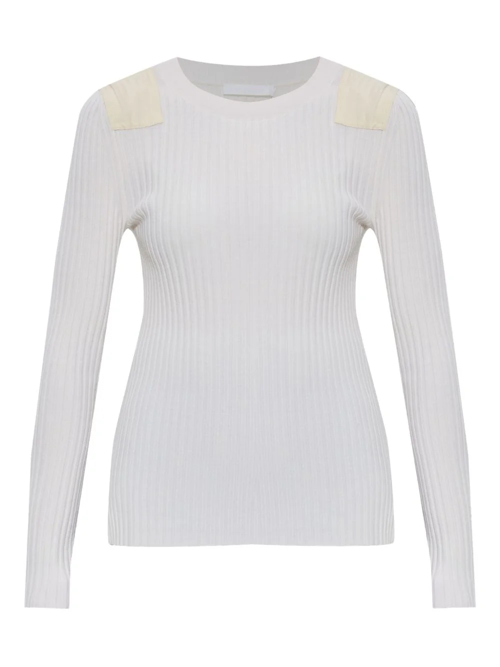 ribbed long-sleeve top Highlights - White - Crew neck - Long sleeves - Ribbed construction - Straight hem Imported Composition Wool 82%, Polyamide 15%, Spandex/Elastane 3%