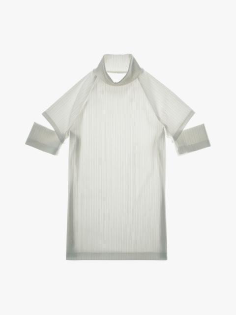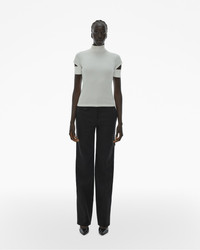 The Helmut Lang Short-Sleeve Turtleneck is a pull-over style in a variegated rib knit with cut-out cuffs. DETAILS - 95% Polyester, 5% Elastane - Turtleneck - Short sleeves - Cut-out cuffs - Imported - M10HW516 CARE - Hand wash cold, separately - Do not soak, bleach, wring or tumble dry - Lay flat to dry - Cool iron or dry clean if needed FIT - Fits true to size - Nyaueth is 5’11” and is wearing size S