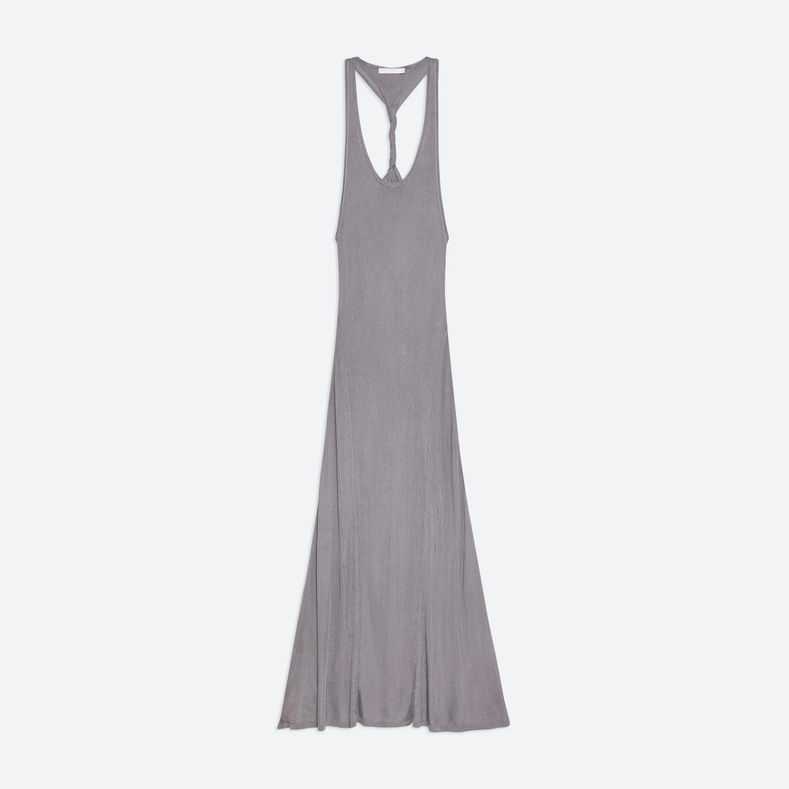 Scoop-neck tank dress in viscose rib. Slim fit with a twisted racer-cut back. Fits true to size. Model is 5’10” and wears size S. DETAILS - Scooped neck - Twisted racerback - Maxi-length - P04HW706 MATERIALS & CARE - Composition: 88% viscose, 12% nylon - Dry clean with any solvent except trichloroethylene. - Finished Garment Manufacturing Country/Region: China - Fabric Production Country/Region: China - Dyeing Country/Region: (of fabric) China - Finishing Country/Region: (of fabric) China - Spinning: (of fabric) China