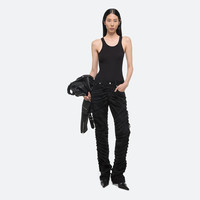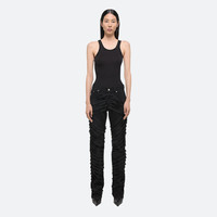 Low-rise five-pocket jeans wrapped in sheer ribbons. Layered strips of power mesh add texture and a sense of restraint without restricting movement. Cut with an easy, relaxed fit and a straight leg. Fits true to size. Model is 5’11” and wears size 26 DETAILS - Low-rise - Straight leg - Relaxed fit - Zip fly with button closure - Classic five-pocket style - Belt loops - 100% cotton denim - O06DW201 MATERIALS & CARE - Composition: 100% Cotton - Spot clean only. - Finished Garment Manufacturing Country/Region: China - Fabric Production Country/Region: Italy - Weaving Country/Region: (of fabric) Italy - Dyeing Country/Region: (of fabric) Italy - Finishing Country/Region: (of fabric) Italy