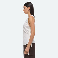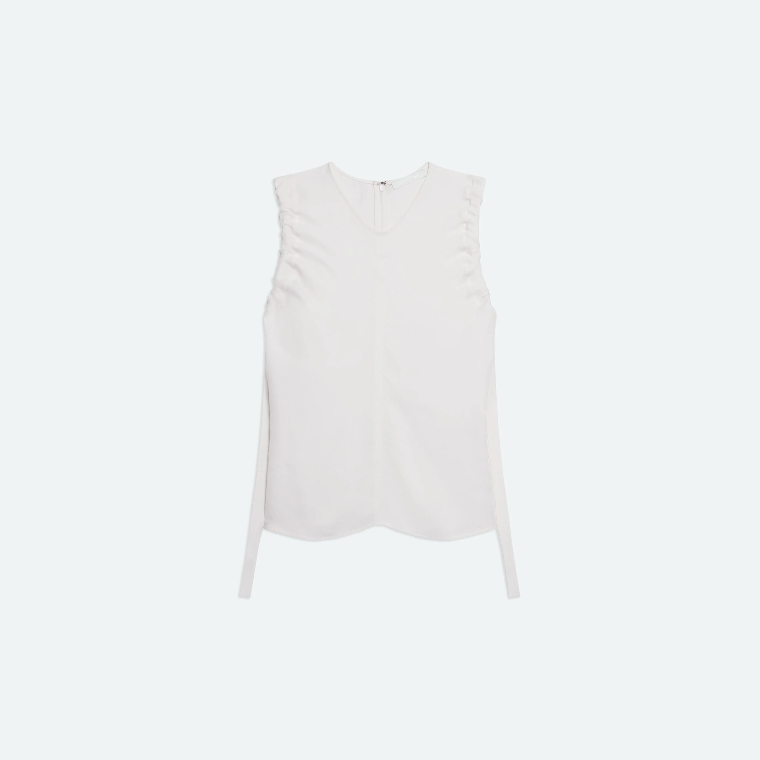 Sleeveless bias-cut top in lightweight twill. Adjustable ruched detail on armholes with tonal elastic straps. Fits true to size. Model is 5'11" and wears size 2. DETAILS - Crewneck - Invisible zipper closure at back - Ruched armholes with elastic straps - Slim fit - P06HW606 MATERIALS & CARE - Composition: 100% rayon - Professional dry clean only. - Finished Garment Manufacturing Country/Region: China - Fabric Production Country/Region: Japan - Weaving Country/Region: (of fabric) Japan - Dyeing Country/Region: (of fabric) Japan - Finishing Country/Region: (of fabric) Japan