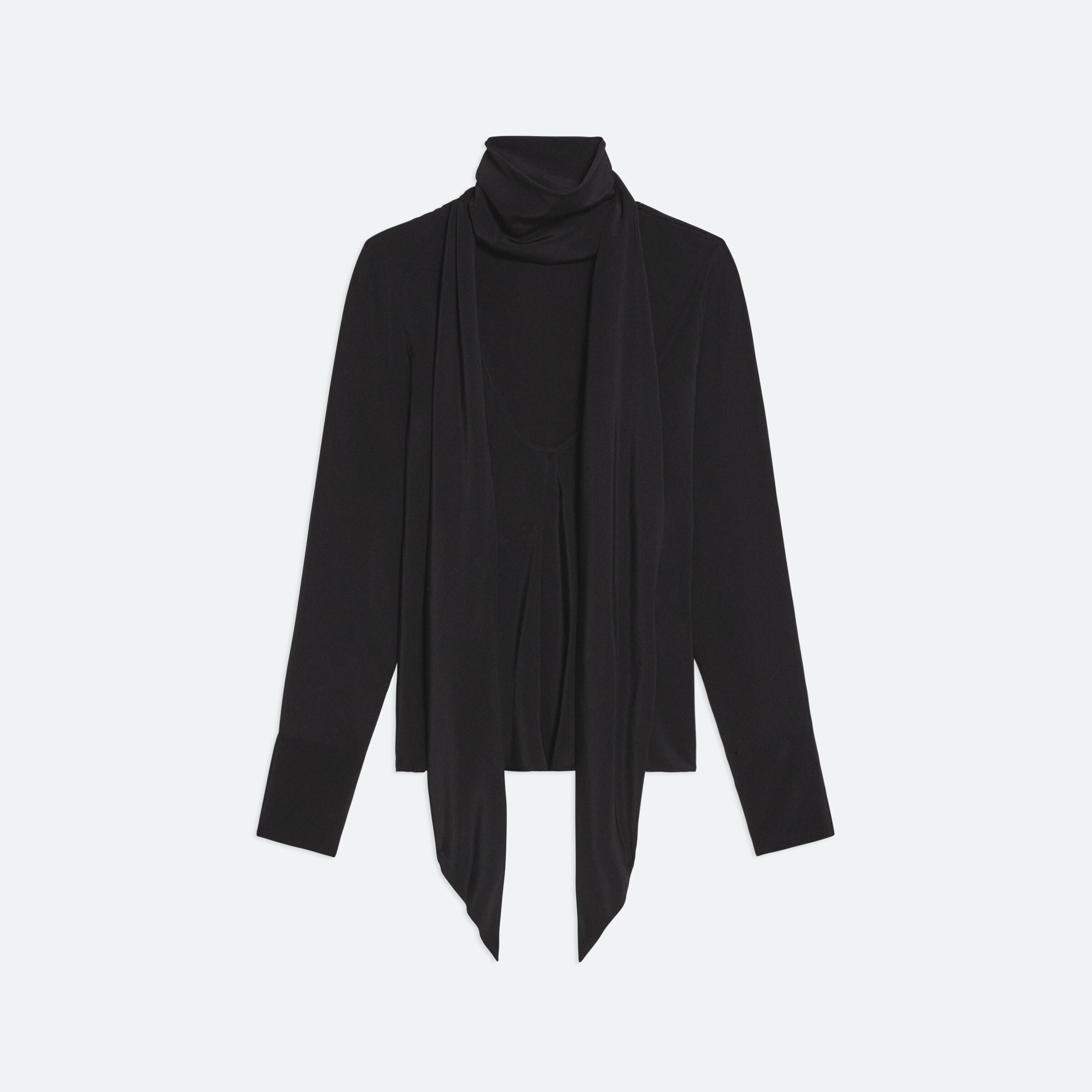 Relaxed fit bias-cut blouse in opaque silk, with french cuffs and a detachable modular scarf. Fully reversible, this garment was designed with the freedom of the wearer in mind and constructed to be worn in many ways. Fits true to size. Model is 5’9” and is wearing size S DETAILS - U-neckline - Detachable scarf detail - Long sleeves - Elongated tuxedo cuffs - O01HW522 MATERIALS & CARE - Composition: 100% Silk - Professional dry clean only - Finished Garment Manufacturing Country/Region: China - Fabric Production Country/Region: Korea (South) - Weaving Country/Region: (of fabric) China - Dyeing Country/Region: (of fabric) China - Finishing Country/Region: (of fabric) China