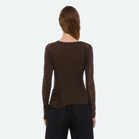 Long-sleeved top in a sheer cotton jersey. Features a doubled back panel and asymmetrical ruching that wraps around the body to create a twisted, wind-blown look. Fits true to size. Model is 5'10 and wears size S. DETAILS - Asymmetrical neckline - Asymmetrical ruching throughout - Doubled back panel - Q02HW505 MATERIALS & CARE - Composition: 100% cotton - Warm iron if needed. Do not dry clean. - Finished Garment Manufacturing Country/Region: China
