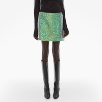 The Helmut Lang Mini Skirt in sequin mesh with a side zip closure. DETAILS - 100% Polyester - Side zip closure - Imported - N07HW302 CARE - Professional dry clean only FIT - Fits true to size - Aliet is 5’10” and is wearing size S
