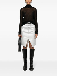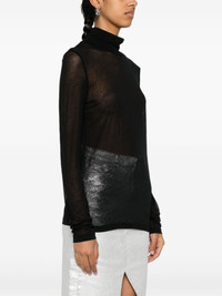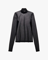 The Helmut Lang Tee is a long-sleeve style in crepe hosiery with a sheer back panel and thumbhole cut-outs. DETAILS - 100% Polyester - Mock neckline - Long-sleeves - Sheer back panel - Imported - M06HW522 CARE - Hand wash warm with like colors - Do not bleach, tumble dry, iron print or dry clean - Lay flat to dry - Cool iron if needed FIT - Fits true to size - Victoria is 5'10" and wearing size 2