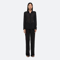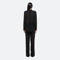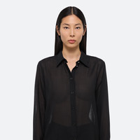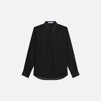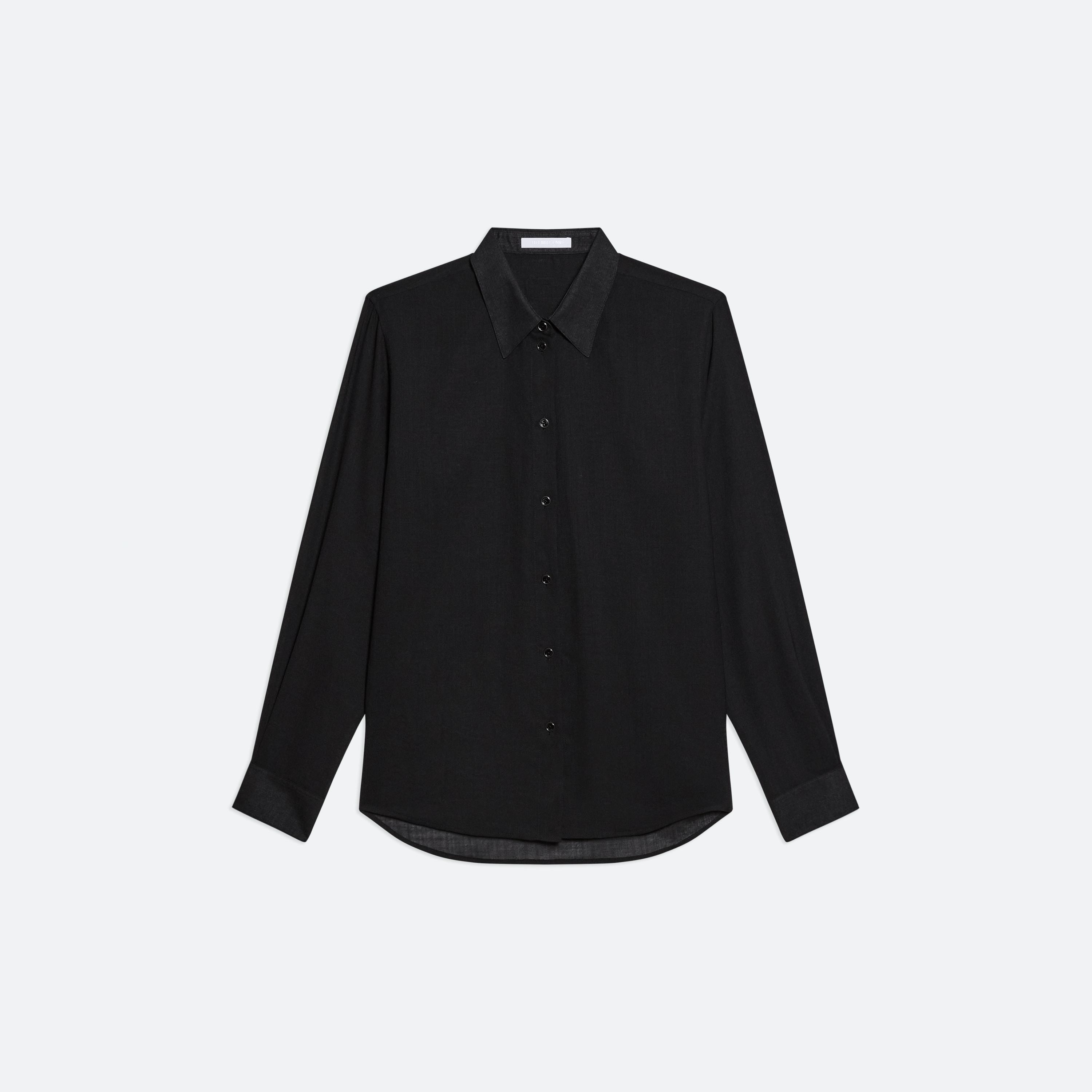 Classic shirt in lightweight wool chiffon. Matches the Sheer Double-Pleated Pants. Fits true to size. Model is 5’11” and wears size S. DETAILS - Pointed collar - Long sleeves - Button front closure and cuffs - Shirttail hem - Metal-wrapped logo buttons - Tonal rubber logo patch at back - P01HW507 MATERIALS & CARE - Composition: 89% wool, 11% polyamide - Do not wash, do not bleach, do not tumble dry, warm iron if needed, dry clean with any solvent except trichloroethylene - Finished Garment Manufacturing Country/Region: China - Fabric Production Country/Region: Turkey - Weaving Country/Region: (of fabric) Turkey - Dyeing Country/Region: (of fabric) Turkey - Finishing Country/Region: (of fabric) Turkey