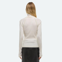 Ribbed cotton turtleneck with layered shrug effect on shoulders. Fits true to size. Model is 5'11" and wears size S. DETAILS - Turtleneck - Layered shoulder - Thumbhole on sleeves - Slim fit - P09HW506 MATERIALS & CARE - Composition: 95% cotton, 5% spandex - Machine wash cold gentle cycle, with like colors. Do not bleach. Tumble dry low. Cool iron if needed. Do not dry clean. - Finished Garment Manufacturing Country/Region: Peru