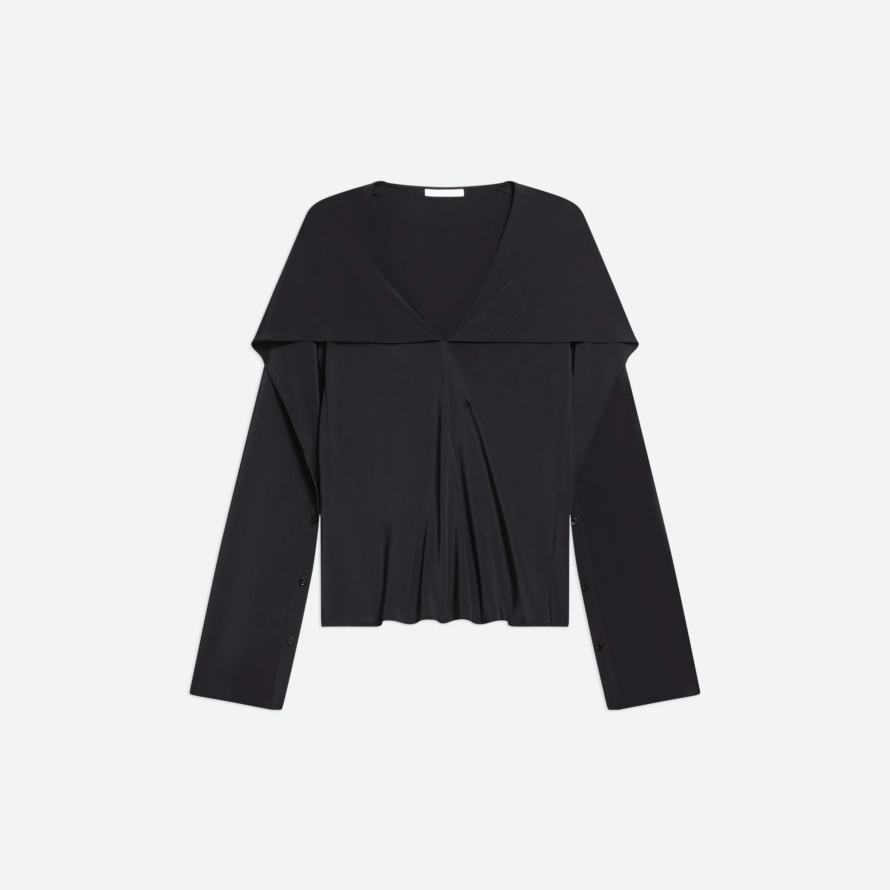 Bias-cut blouse in silk crepe de chine, with draped sleeves attached at the neckline. Unbutton to wear the sleeves loose like a cape, or wrapped as a scarf. Fits true to size. Model is 5’11” and wears size S DETAILS - Bias-cut silk - Modular cape sleeves - Hidden button placket on sleeves - Relaxed fit - O06HW504 MATERIALS & CARE - Composition: 100% Silk - Finished Garment Manufacturing Country/Region: China - Fabric Production Country/Region: China - Weaving Country/Region: (of fabric) China - Dyeing Country/Region: (of fabric) China - Finishing Country/Region: (of fabric) China